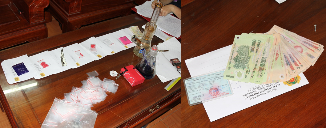 Khám xét khẩn cấp nơi ở của Minh, cơ quan Công an thu giữ: 6 xe máy và các loại giấy tờ liên quan đến việc cho vay lãi nặng cùng 432 viên ma túy dạng Ngựa; 1 túi ma túy đá 0,15gram; 5 lưỡi lê AK, đao và vũ khí thô sơ….