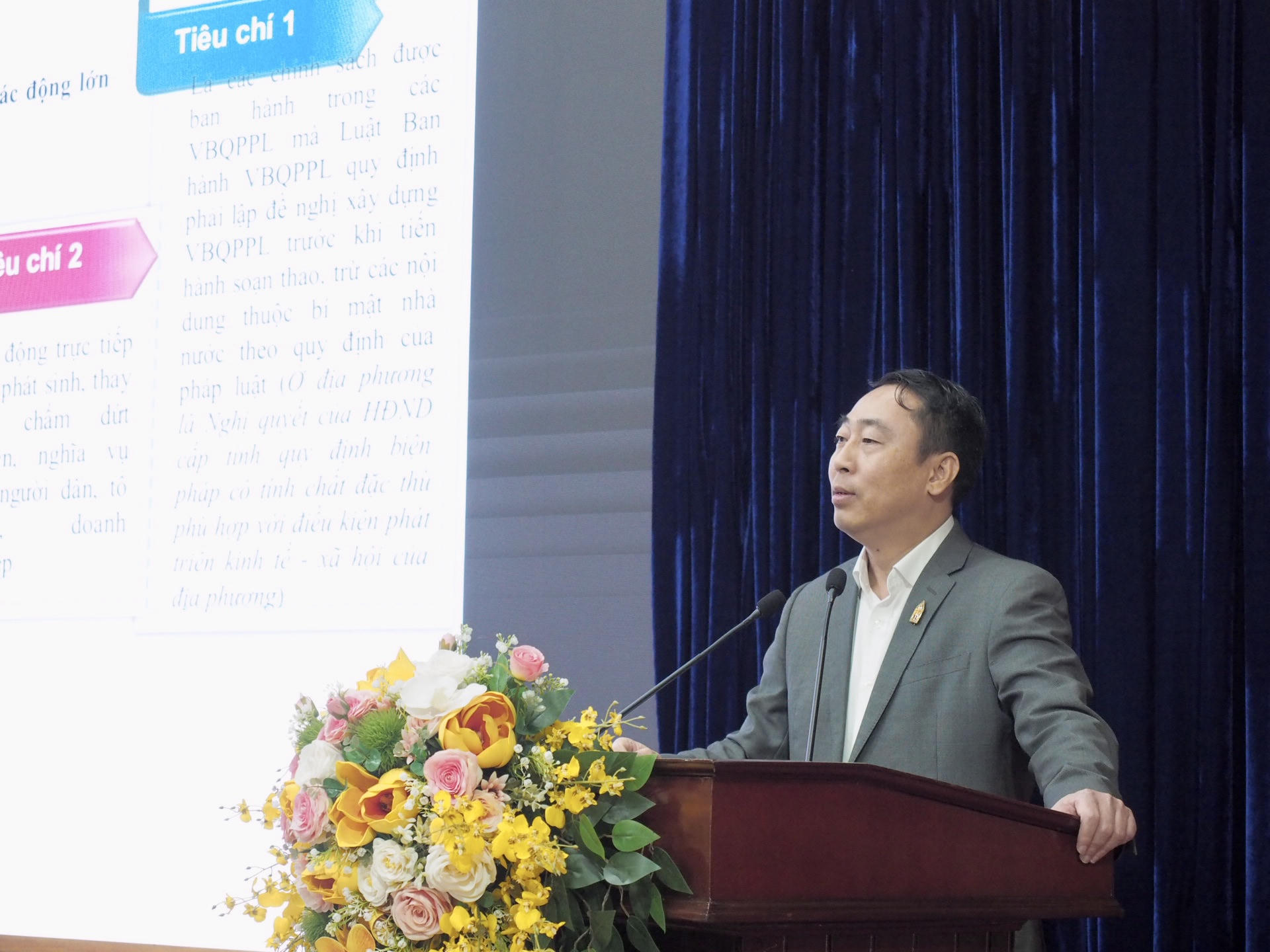 Tại hội nghị, Vụ trưởng Vụ Phổ biến, Giáo dục Pháp luật Lê Vệ Quốc đã trình bày các nội dung liên quan đến Đề án "Tổ chức truyền thông chính sách có tác động lớn đến xã hội trong quá trình xây dựng văn bản quy phạm pháp luật giai đoạn 2022-2027" cho các đại biểu tham dự. Đồng chí Lê Vệ Quốc đã nêu lên tầm quan trong của việc truyền thông chính sách có tác động lớn đến xã hội được thực hiện từ sớm, từ xa, ngay từ khi lập đề nghị xây dựng văn bản quy phạm pháp luật (VBQPPL); các nhiệm vụ, giải pháp trong công tác truyền thông dự thảo chính sách.