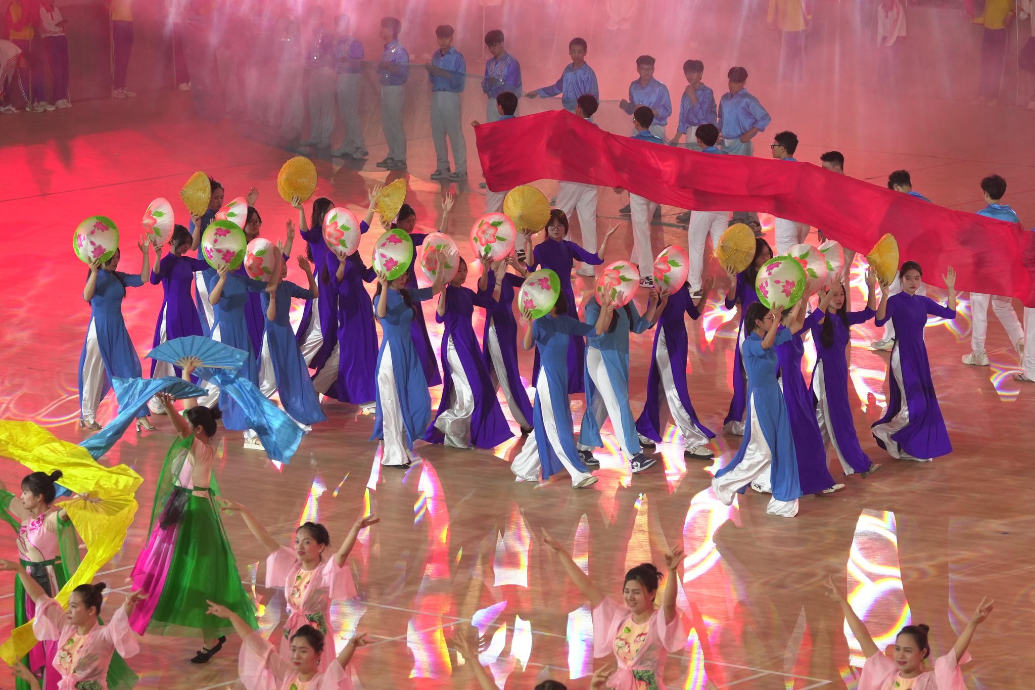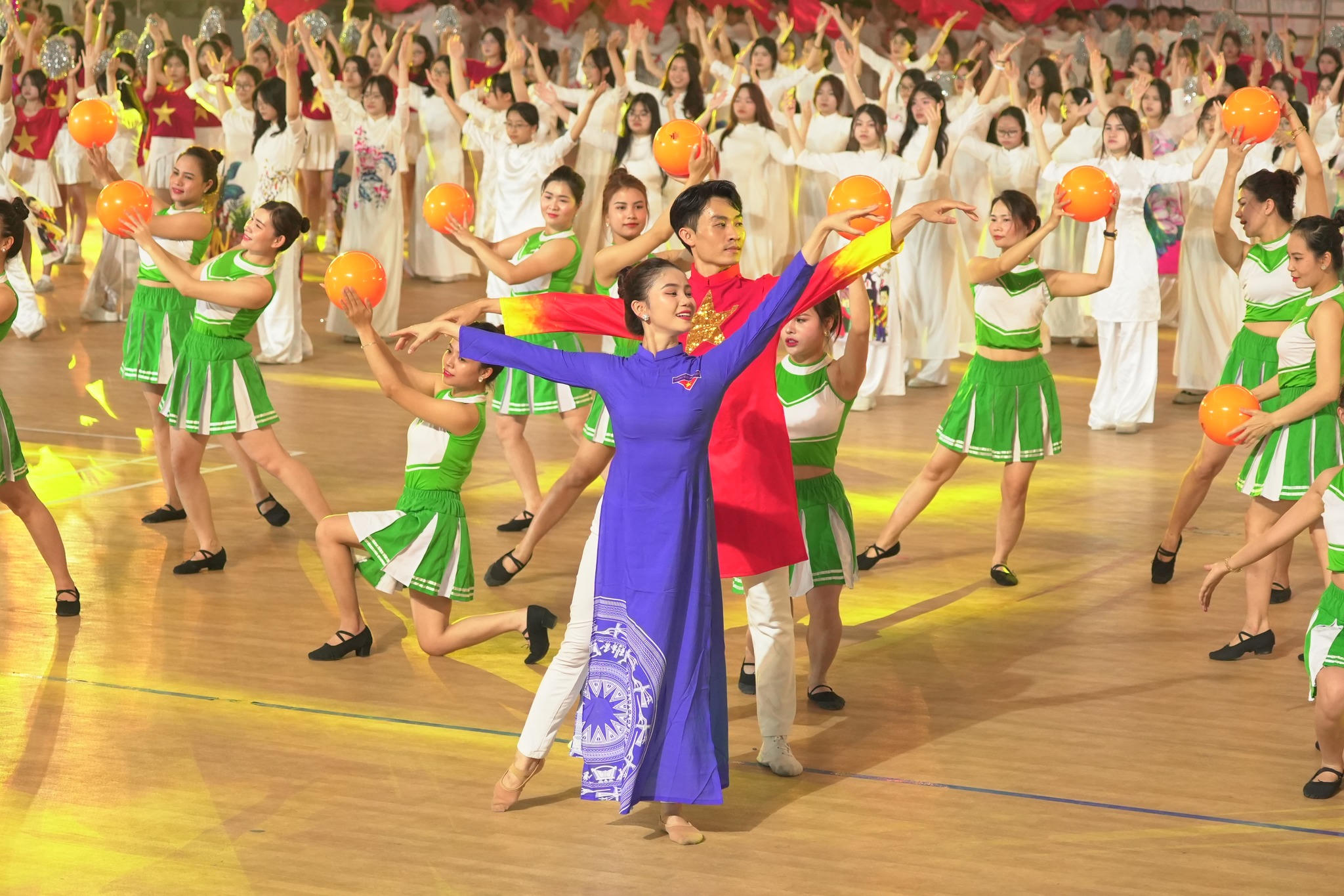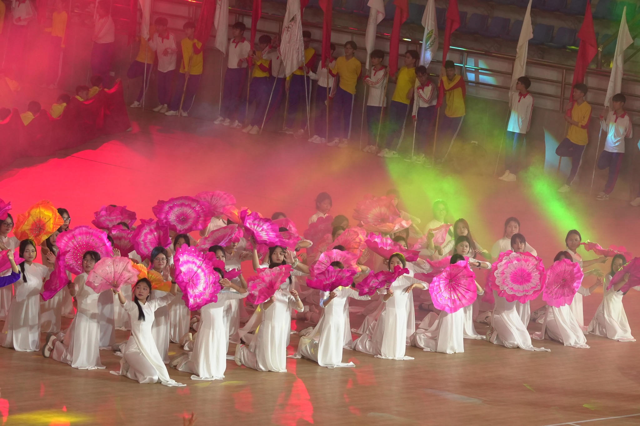 Sôi động nhất là phần diễu hành của 32 đoàn vận động viên (VĐV), trọng tài đến từ các trường THPT và phòng GD&ĐT các huyện, thị xã, thành phố.
