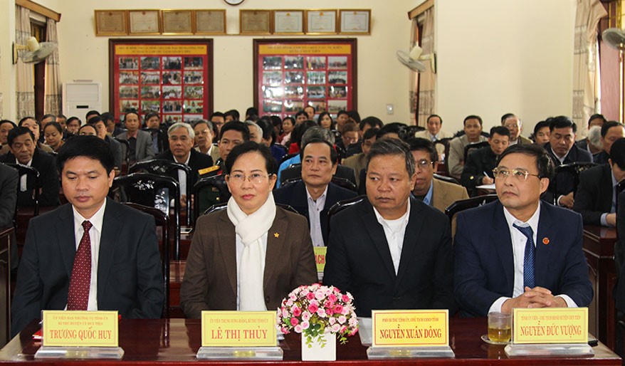 Tham dự Hội nghị có Ủy viên Trung ương Đảng, Bí thư Tỉnh ủy Lê Thị Thủy; Phó Bí thư Tỉnh ủy, Chủ tịch UBND tỉnh Nguyễn Xuân Đông cùng đại diện lãnh đạo các ban xây dựng Đảng, Văn phòng Tỉnh ủy, Văn phòng UBND tỉnh, các sở, ngành của tỉnh và đại diện Bí thư các chi, đảng bộ trực thuộc Huyện ủy.