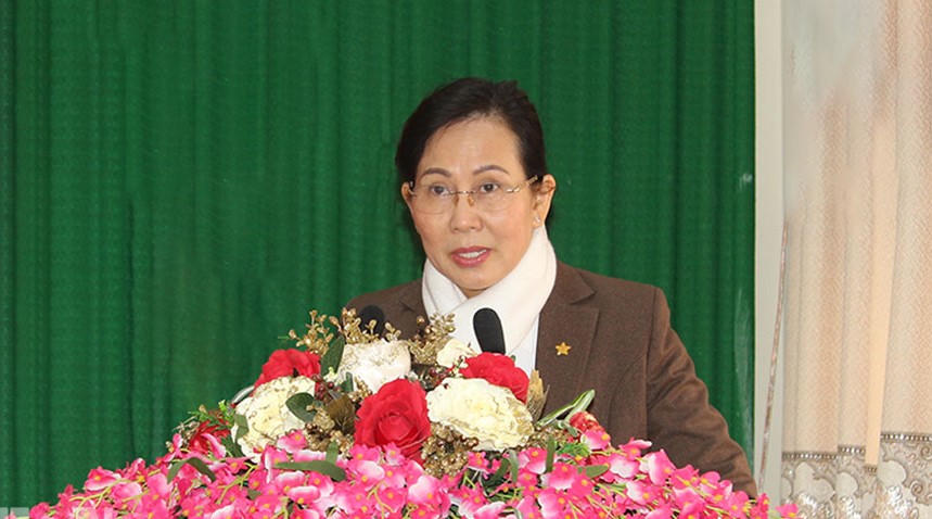 Phát biểu tại hội nghị, Bí thư Tỉnh ủy Lê Thị Thủy chúc mừng đồng chí Trương Quốc Huy được Ban Thường vụ Tỉnh ủy điều động, phân công nhận nhiệm vụ mới, đồng thời ghi nhận những đóng góp của đồng chí Trương Quốc Huy trong thời gian qua. Qua đó, bà Thủy đề nghị đồng chí Trương Quốc Huy cần nhanh chóng tiếp nhận công việc, gương mẫu, nỗ lực cố gắng, đoàn kết vượt qua các khó khăn cùng tập thể Thường trực, Ban Thường vụ, Ban Chỉ huy Đảng bộ và nhân dân huyện.