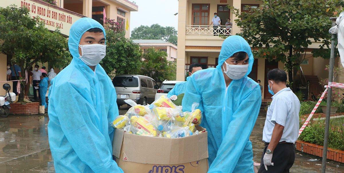 Nhu yếu phẩm được lực lượng chức năng chuyển tới khu cách ly |