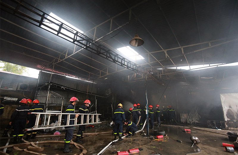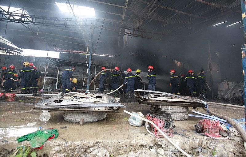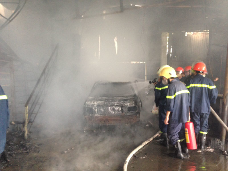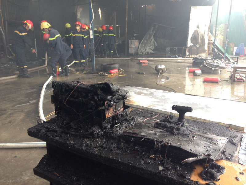 Điểm phát bắt cháy bắt đầu từ phân xưởng sơn rộng khoảng 400m2. Tại hiện trường, chiếc ô tô đang trong quá trình sơn bị thiêu rụi.