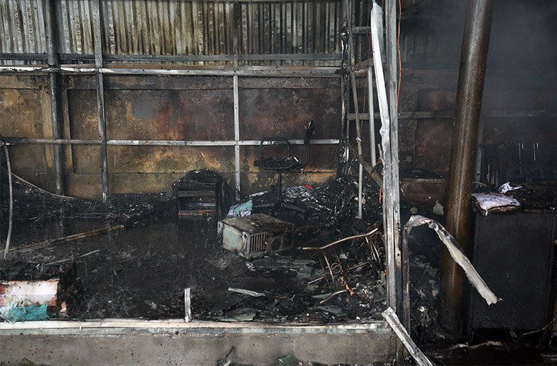 Khu vực hành chính thu ngân cũng bị thiêu cháy, mất toàn bộ giấy tờ sổ sách.