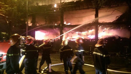 Lực lượng chức năng đã huy động hàng loạt bơm tiếp nước để phục vụ cứu hỏa. Đến khoảng 12h40' đám cháy cơ bản đã được dập tắt.