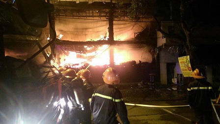 (PLO) - Khoảng 00h00 sáng 24/9, Luxury Bar tại số 153 Yên Phụ, Tây Hồ bốc cháy dữ dội, thiêu rụi toàn bộ tầng 2,3 của quán bar này.