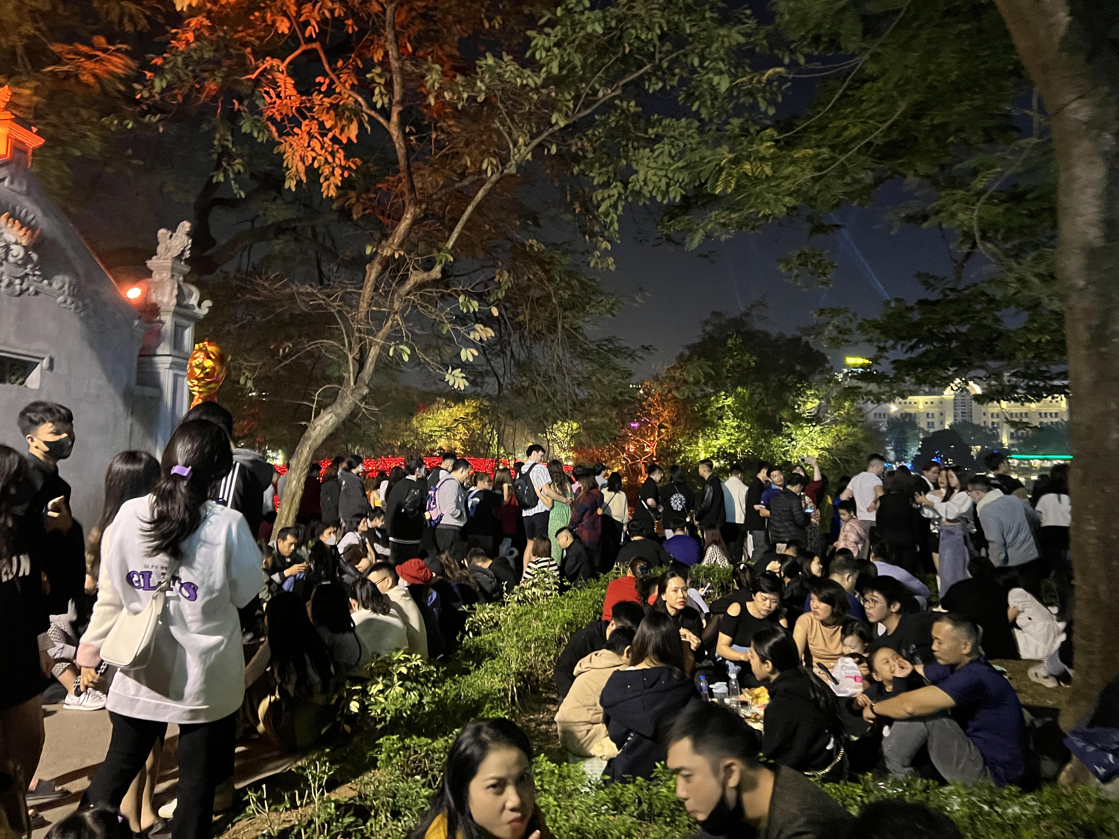 Ghi nhận của Pháp luật Việt Nam, trước thời điểm diễn ra đếm ngược, có hàng ngàn người đã tập trung tại khu vực phố đi bộ Hoàn Kiếm để chờ đợi, một số khu vực ùn ứ, phải chen chân mới có thể di chuyển..