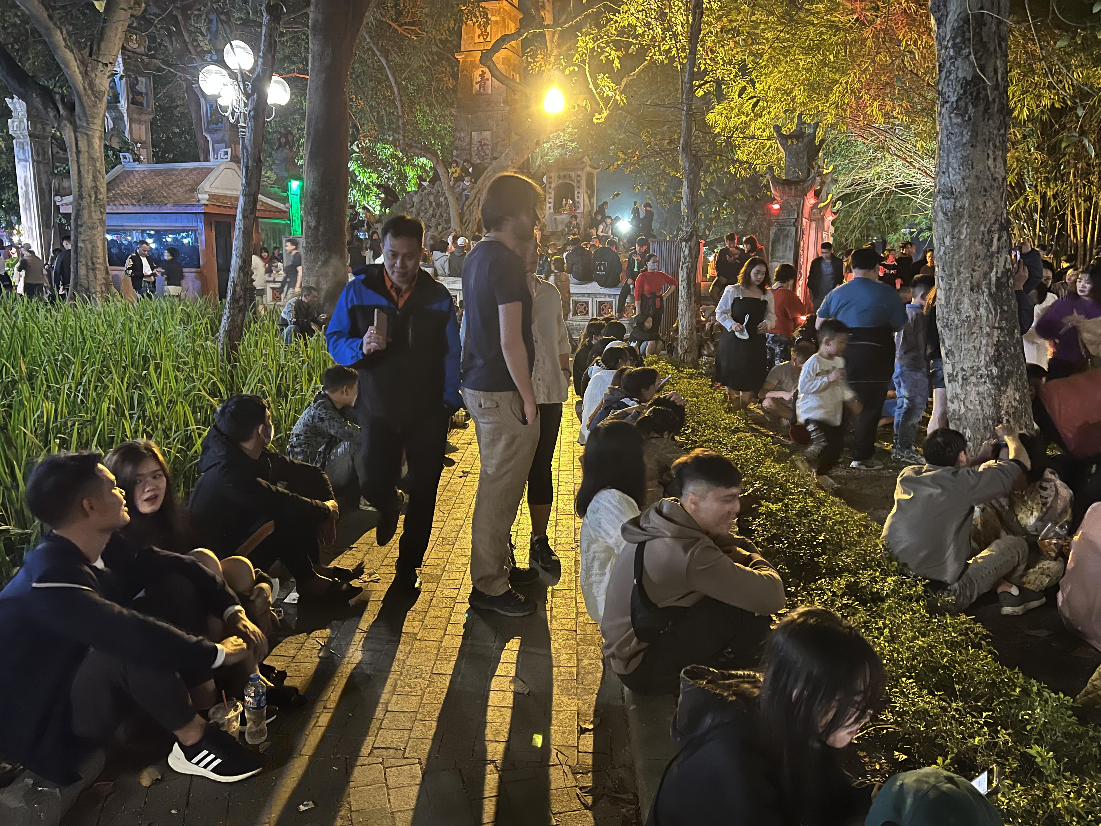 Khu vực tượng đài Quyết tử cũng rất đông các gia đình trải chiếu để ngồi chờ khoảnh khắc đón năm mới.