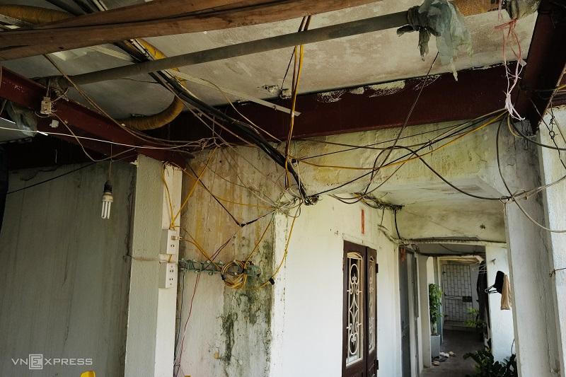 Lo sợ nguy hiểm, nhiều hộ dân ở khu tập thể C8 Giảng Võ đã di dời, bỏ lại những căn hộ trống trơn, ẩm mốc. (Ảnh: VnExpress) |
