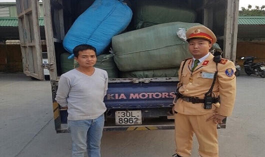 (PLO) - Ngày 11/12, Tổ công tác của Đội CSGT số 14, Phòng CSGT đường bộ - đường sắt, CATP Hà Nội trong quá trình làm nhiệm vụ tuần tra, phân luồng tại tuyến đường Pháp Vân, phát hiện xe tải mang BKS 30L - 8962 lưu thông trên đường có dấu hiệu nghi vấn, đã ra hiệu lệnh dừng xe để kiểm tra hành chính.