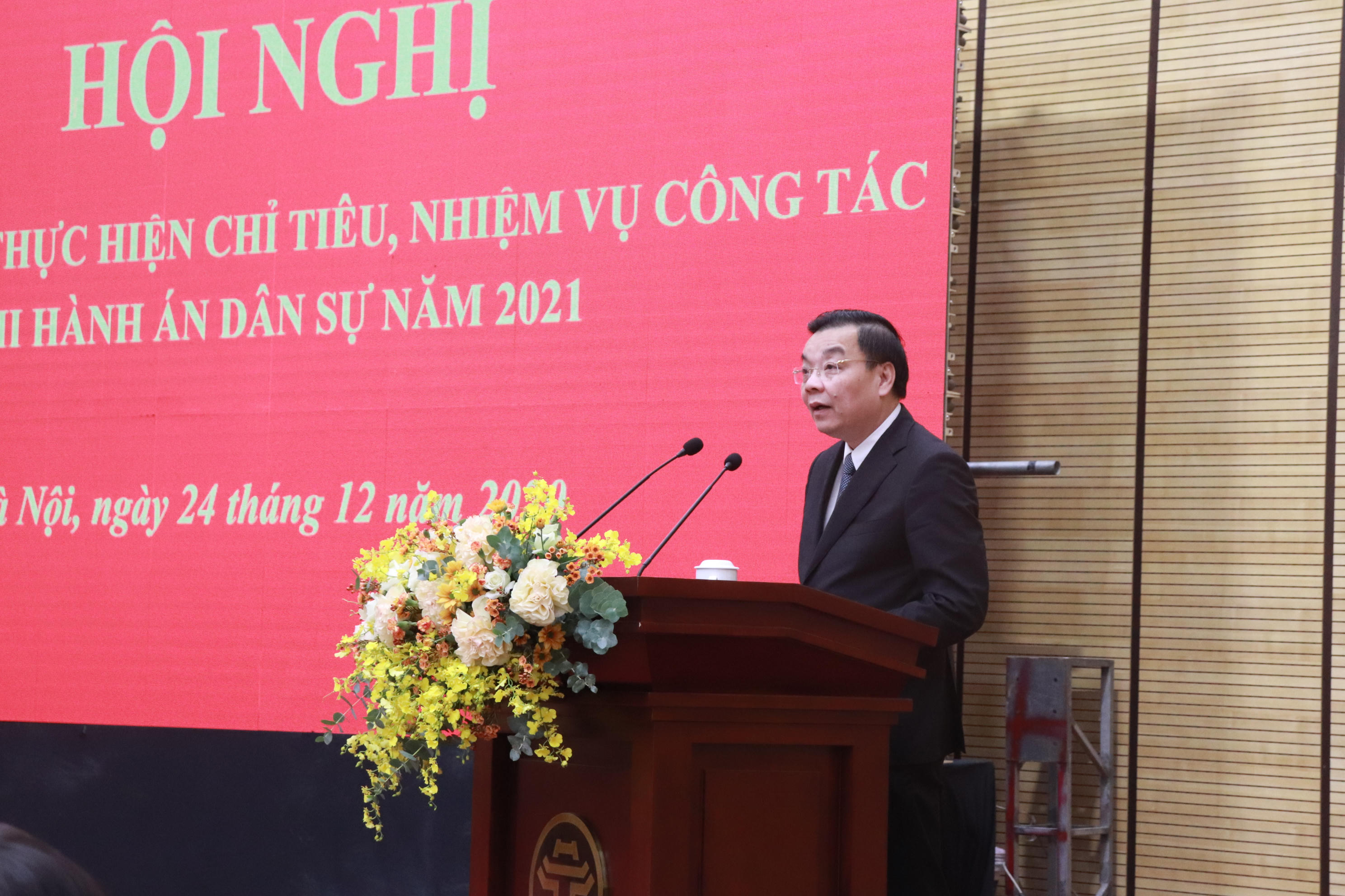 Đánh giá cao những nỗ lực của các cơ quan THADS trên địa bàn, Chủ tịch UBND TP.Hà Nội Chu Ngọc Anh khẳng định kết quả chung mà thành phố đạt được trong năm vừa qua có sự đóng góp quan trọng của các cơ quan THADS. Năm 2021, đồng chí Chủ tịch đề nghị các cơ quan THADS cần bám sát sự lãnh đạo, chỉ đạo của Đảng, Quốc hội, Chính phủ, Bộ Tư pháp, Tổng cục THADS để nỗ lực tổ chức, thực hiện, hoàn thành tốt các chỉ tiêu, nhiệm vụ công tác, gắn với cải cách tư pháp, cải cách hành chính, ứng dụng công nghệ thông tin, đổi mới các mặt công tác, nhất là công tác chỉ đạo, điều hành. Nâng cao chất lượng công tác hướng dẫn, chỉ đạo nghiệp vụ để hạn chế các vi phạm, thiếu sót về chuyên môn nghiệp vụ. Tiếp tục tranh thủ sự ủng hộ của cấp ủy, chính quyền địa phương để thi hành dứt điểm các vụ việc phức tạp, được dư luận quan tâm.