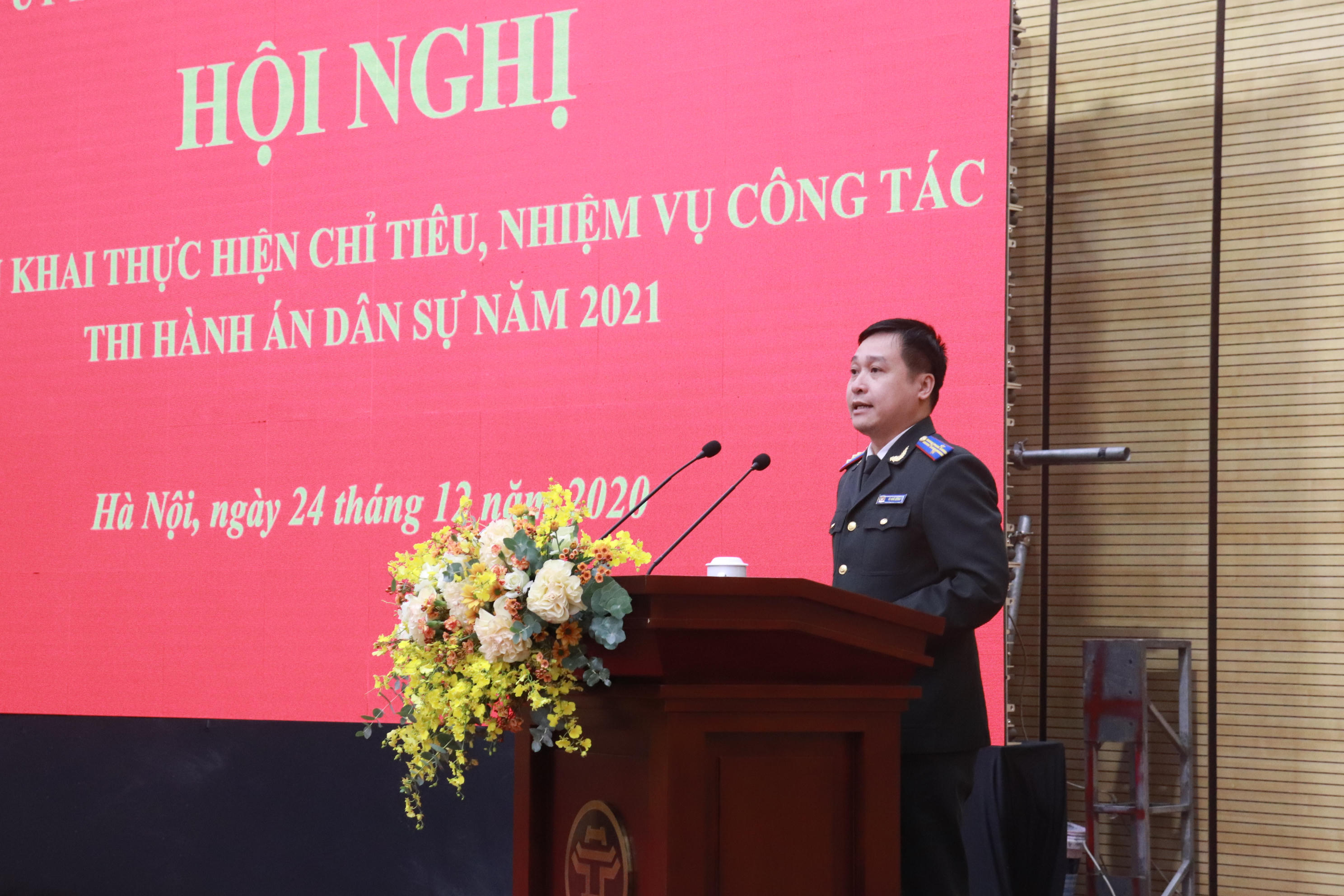 Báo cáo tại Hội nghị, Phó Cục trưởng Cục THADS Hà Nội Vũ Hồng Dương cho biết: năm vừa qua, công tác THADS của các cơ quan THADS TP. Hà Nội đã được triển khai và thực hiện đồng bộ trên tất cả các nhiệm vụ được giao. Theo thống kê kết quả THADS năm 2020, toàn thành phố đạt 80,64% về việc; 38,54% về tiền. Trong đó, có 21 Chi cục hoàn thành cả hai chỉ tiêu về việc và về tiền.