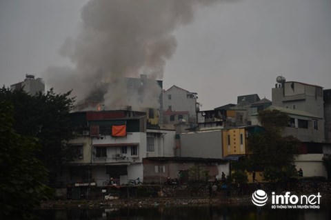 Sau khi nhận được tin báo, ực lượng PCCC Hà Nội đã điều động 4 xe cứu hỏa đến hiện trường dập lửa. Đến 16h30 lửa vẫn cháy to, lan sang nhà lân cận khiến công tác chữa cháy gặp khó khăn.