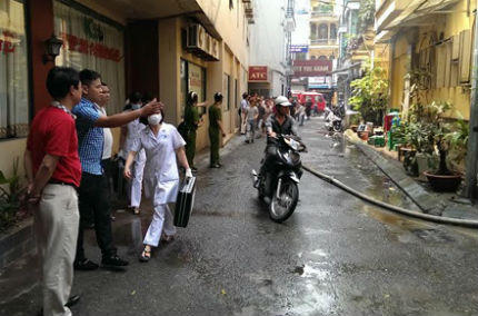 Đại tá Nguyễn Duy Ngọc, Phó Giám đốc Công an Thành phố Hà Nội có mặt tại hiện trường vụ cháy. Lực lượng khám nghiệm hiện trường của Phòng Kỹ thuật hình sự, Công an thành phố Hà Nội cũng đã bắt đầu công việc tại nơi xảy ra cháy.