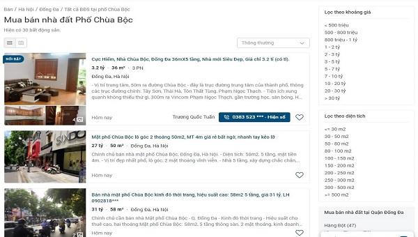 Theo khảo sát trên một website chuyên mua bán bất động sản, chỉ khoảng từ 2- 3 ngày trở lại đây, lượng rao bán nhà phố Chùa Bộc bất ngờ tăng vọt. Trước đó, theo thống kê nhà đất trên con phố Chùa Bộc tính từ ngày 8/8 trở về trước chỉ có khoảng vài lượt rao bán nhà.