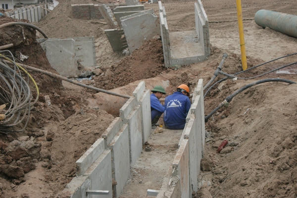 Các công nhân trên công trường đang gấp rút hoàn thiệ hạng mục ngầm để bộ phận mặt đất thi công. (Ảnh: Q.M) |