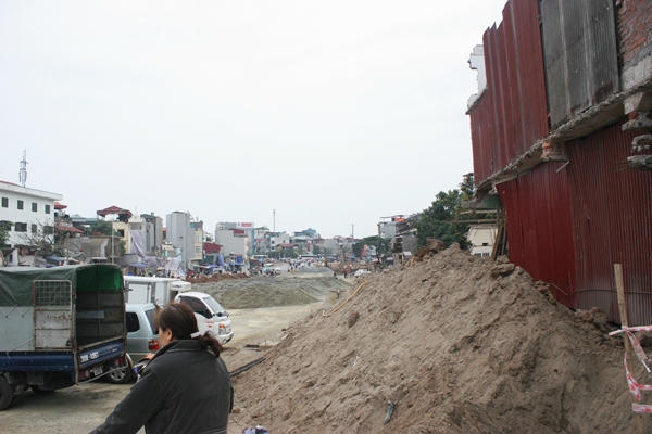 Sau nhiều lần thay đổi tổng mức đầu tư, đến nay dự án tăng lên 1.139 tỷ đồng (vào khoảng trên 1,7 tỷ đồng/mét). Đoạn giáp với đường Trần Khát Chân còn một ngôi nhà chưa xong khâu giải phóng bàn giao mặt bằng.