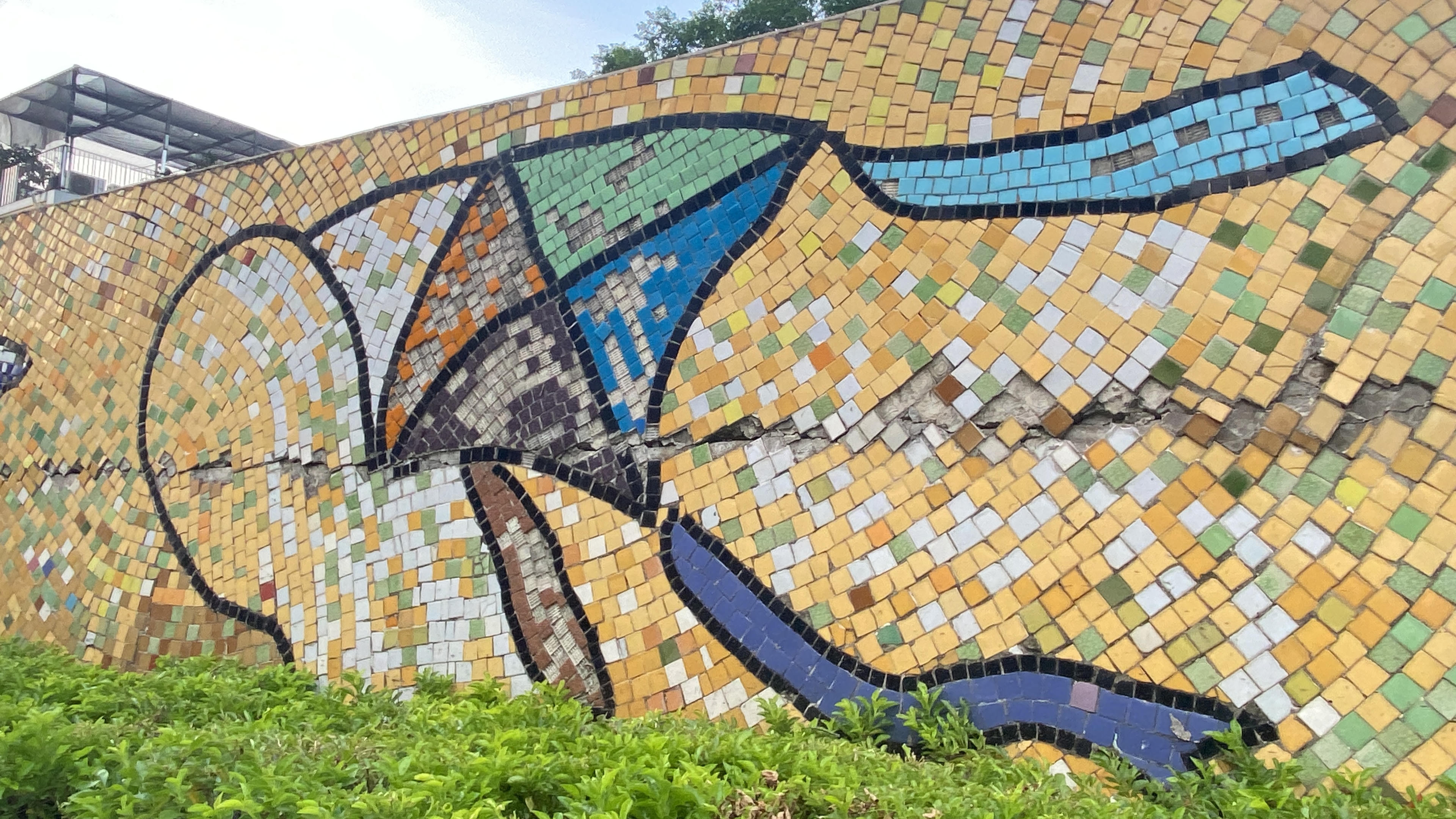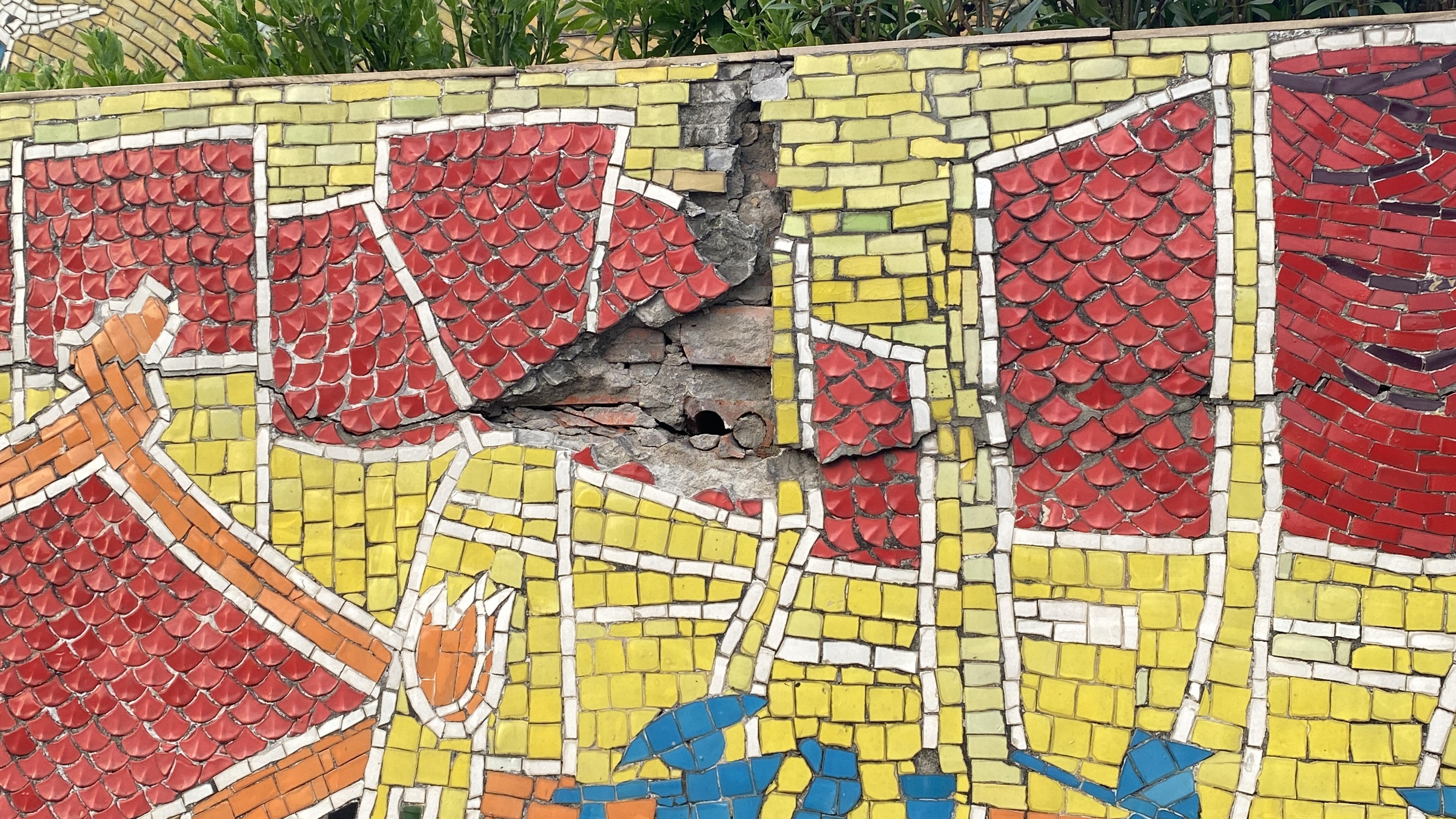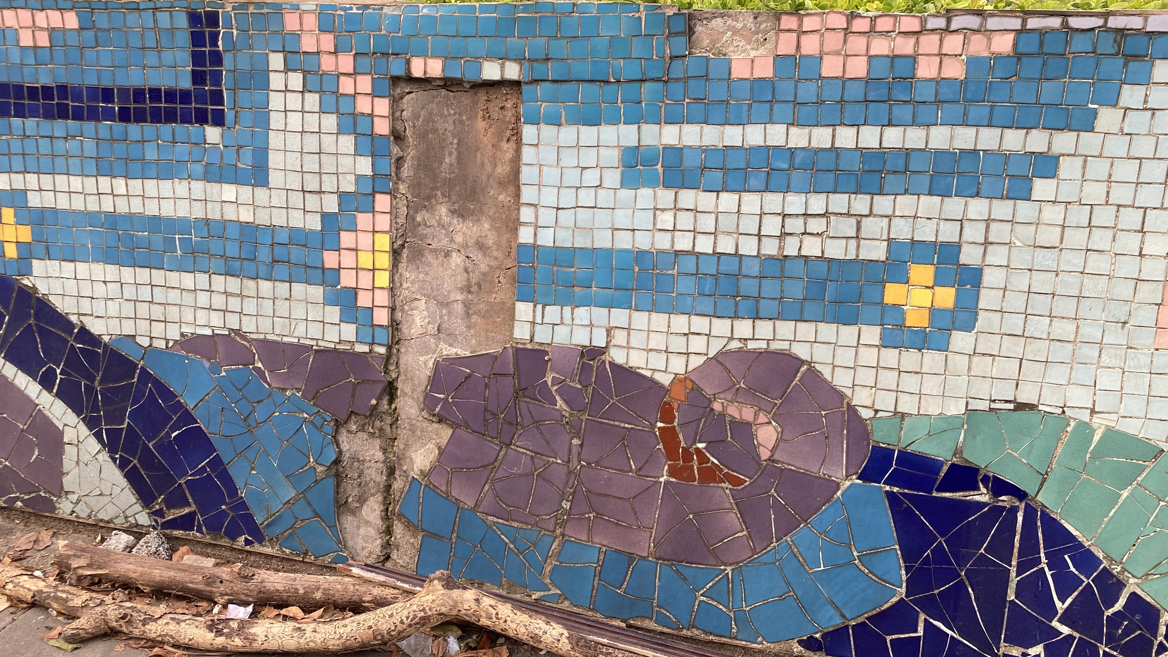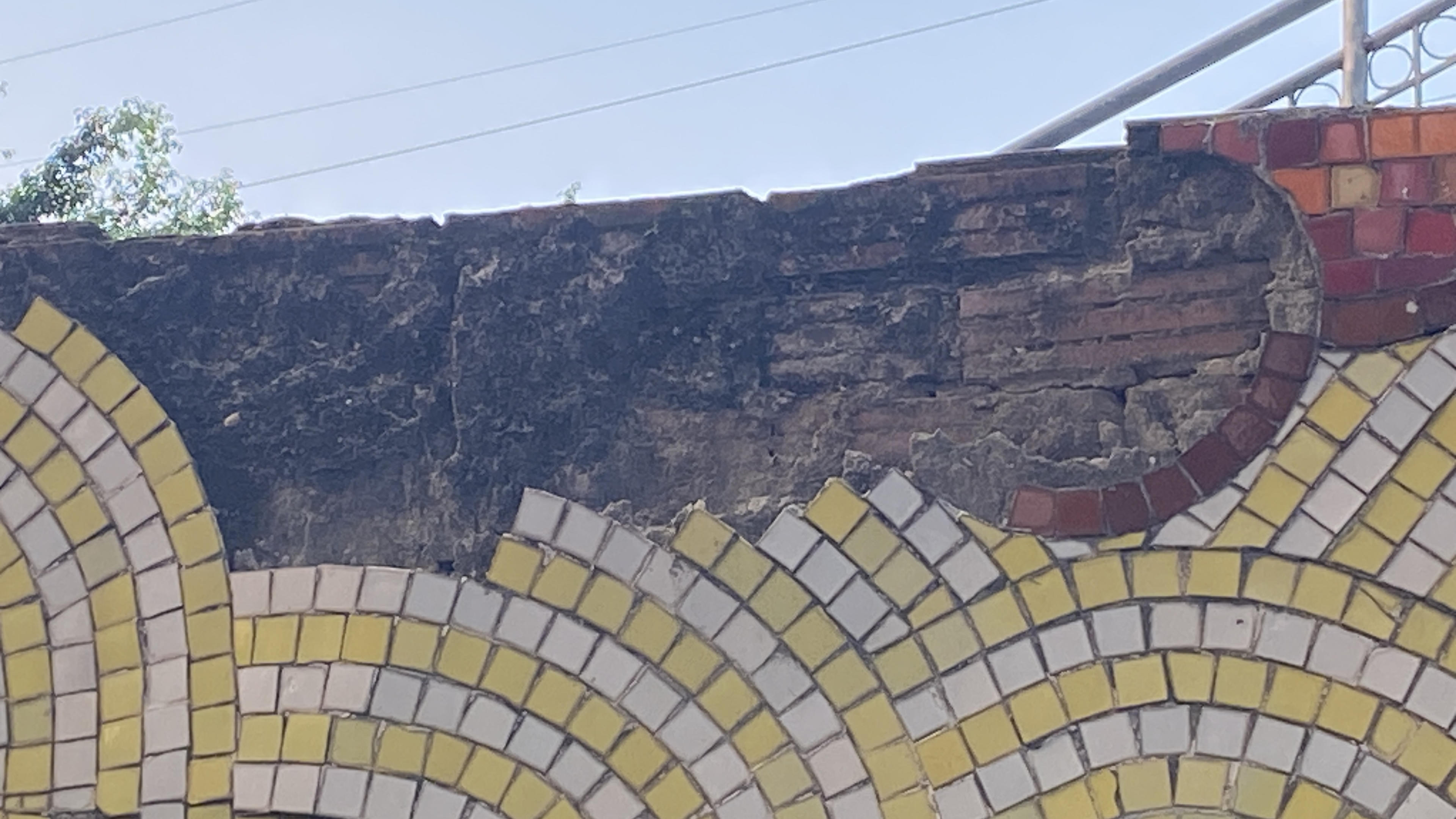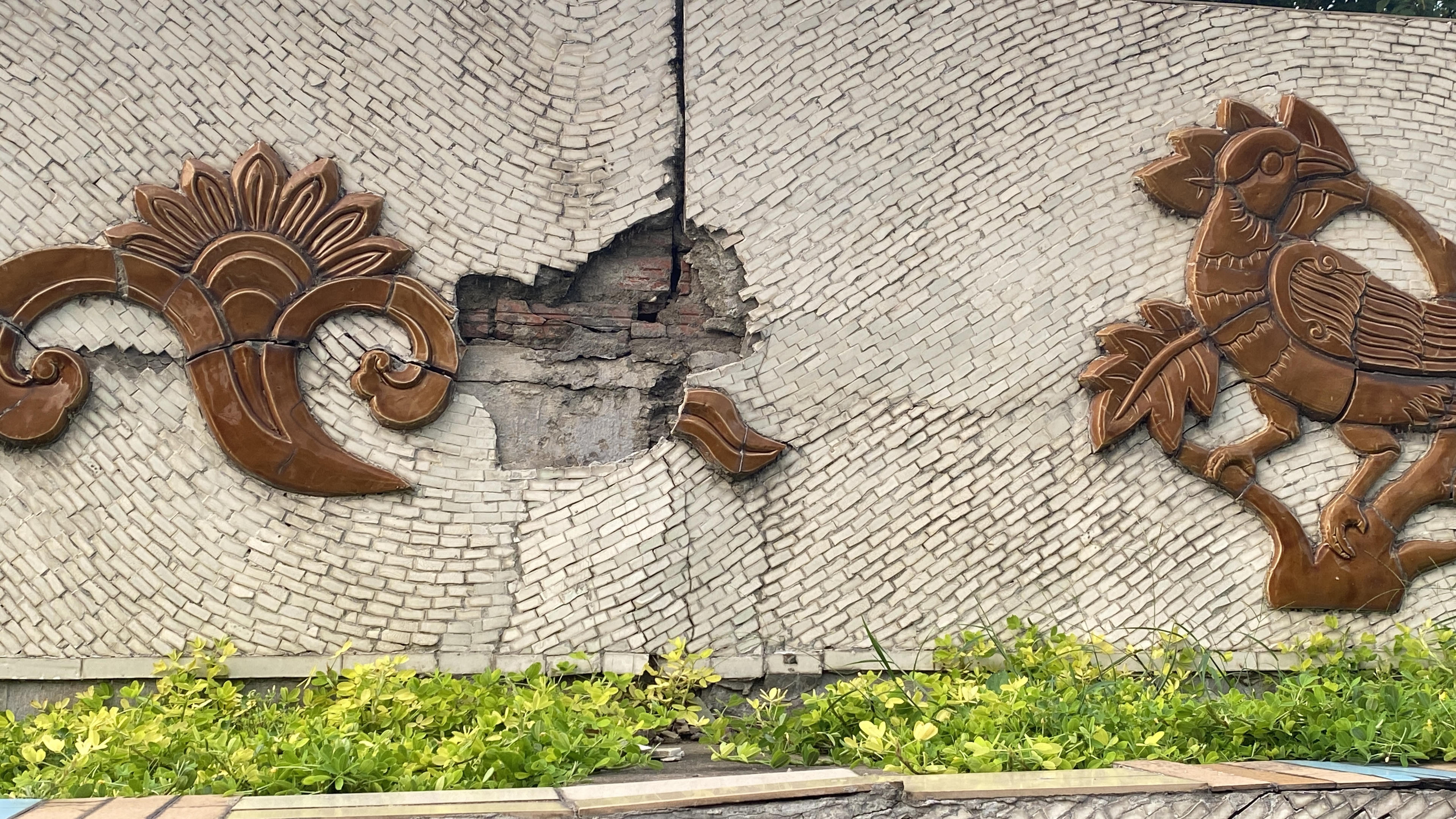 Con đường gốm sứ gắn bó với Hà Nội 13 năm, tuy nhiên đến nay mặt tường đã bong tróc, xuống cấp do lâu ngày không được trùng tu, cải tạo. |