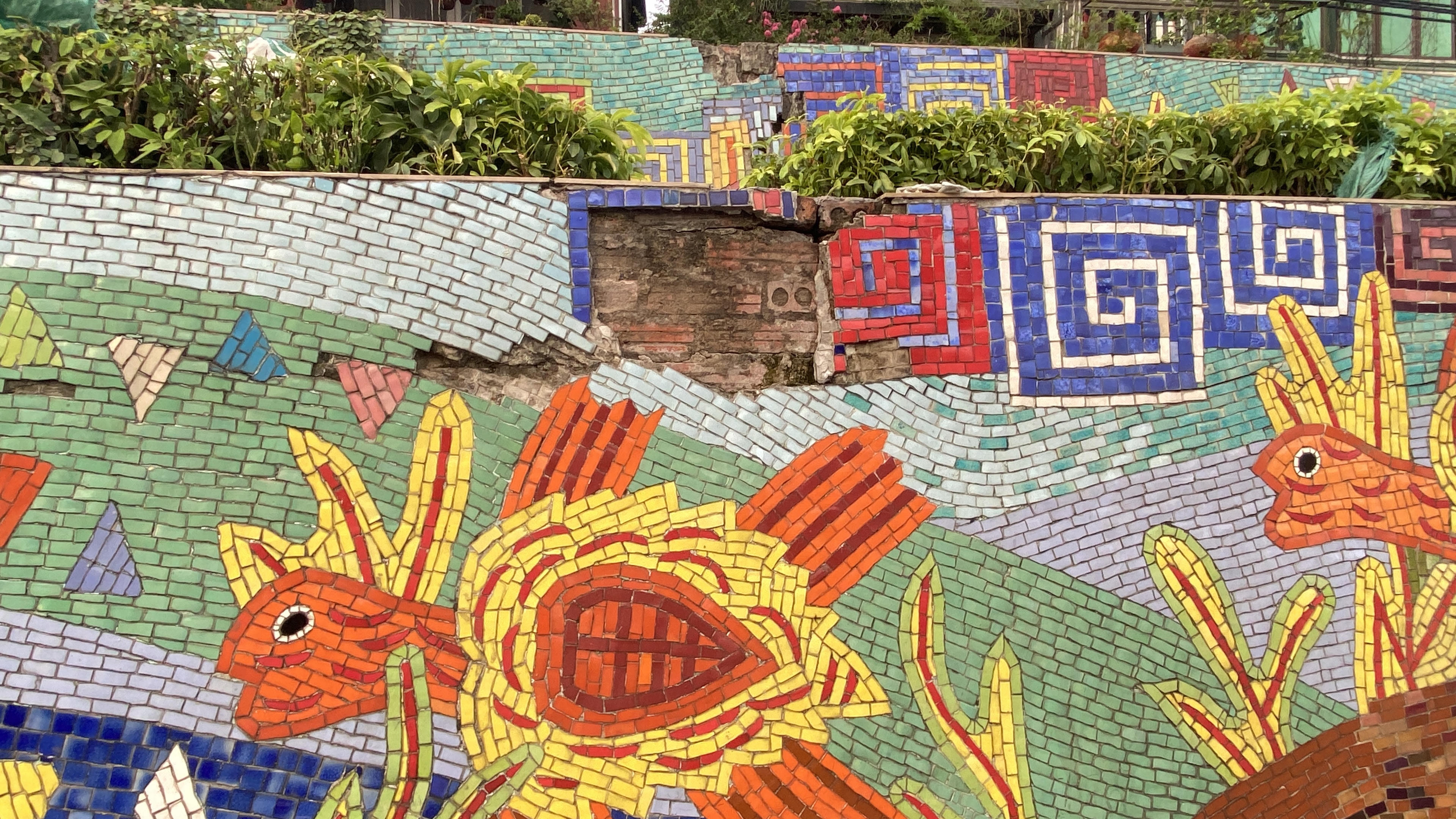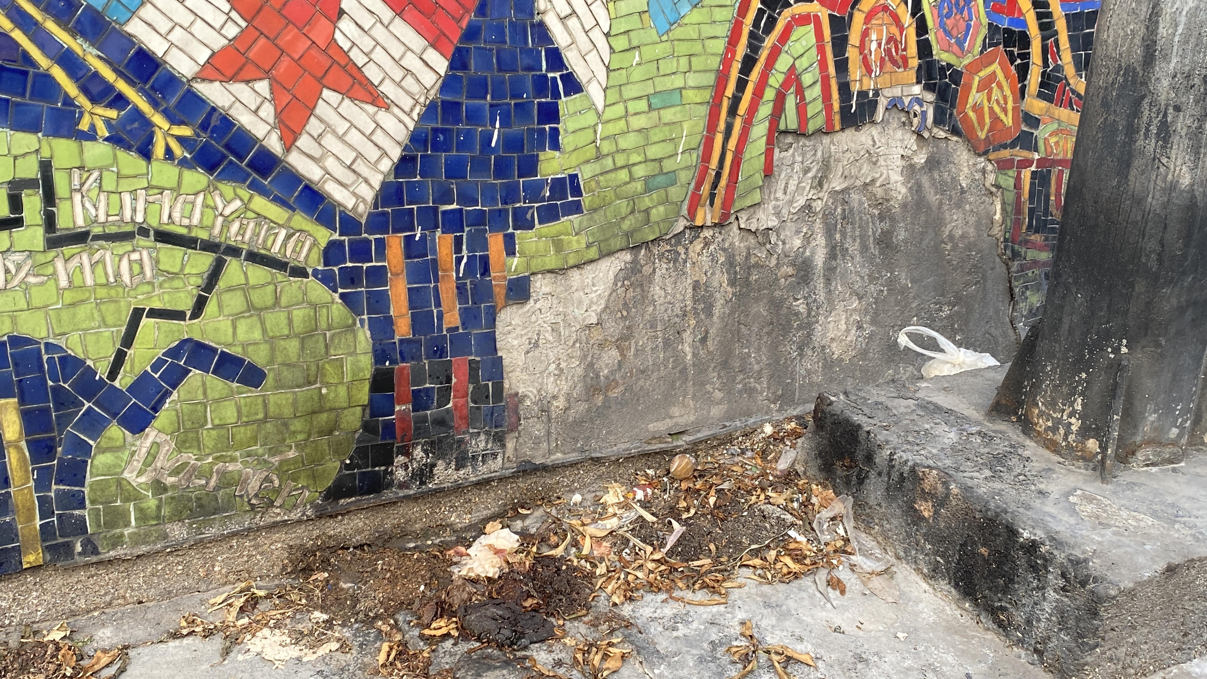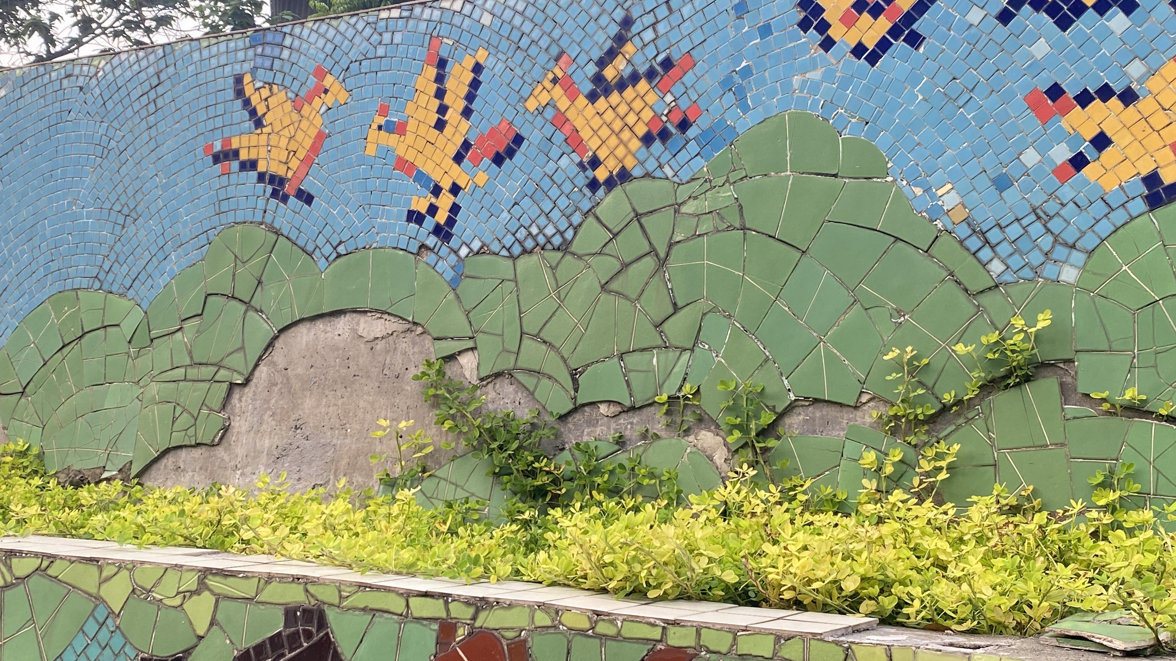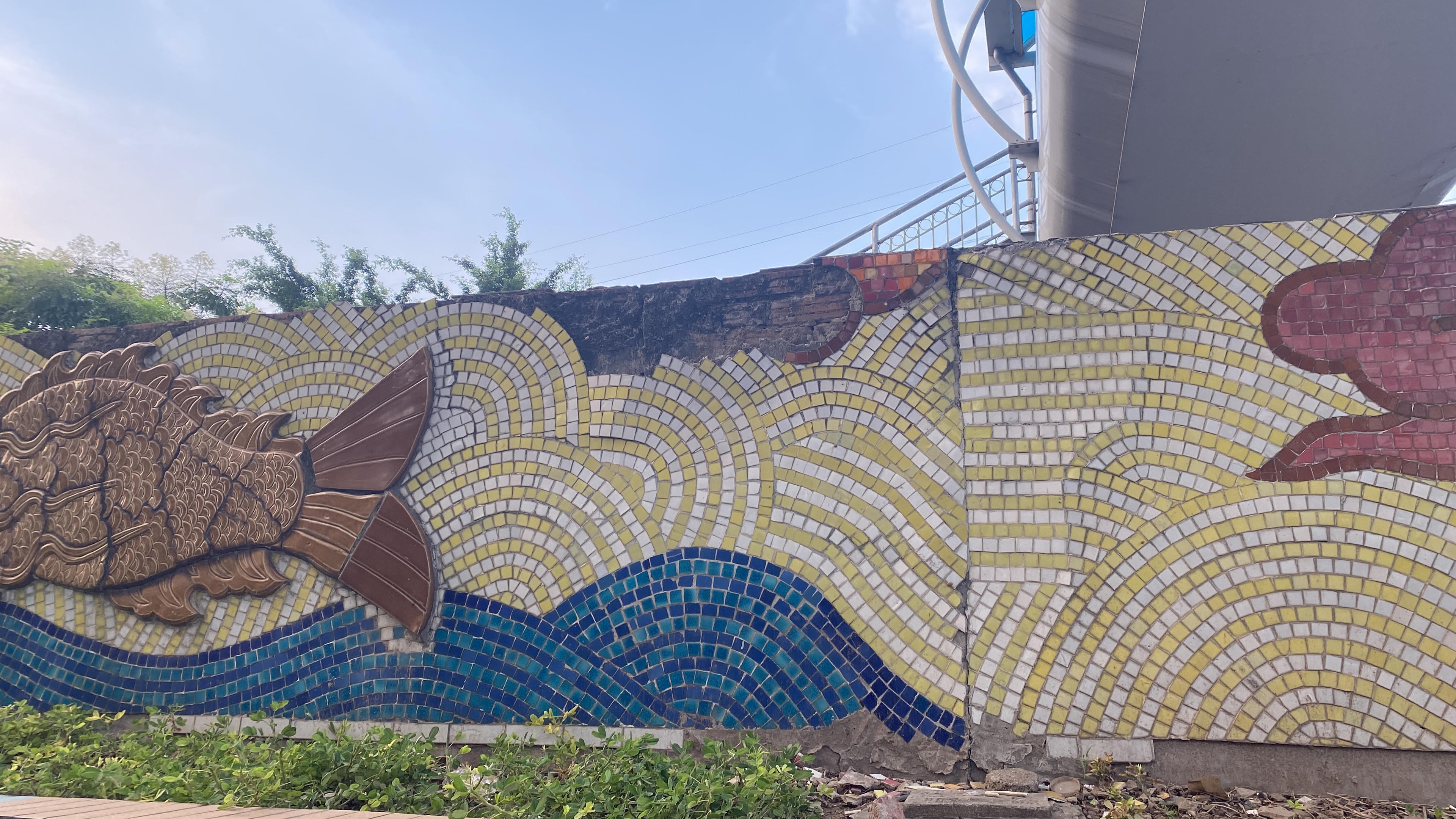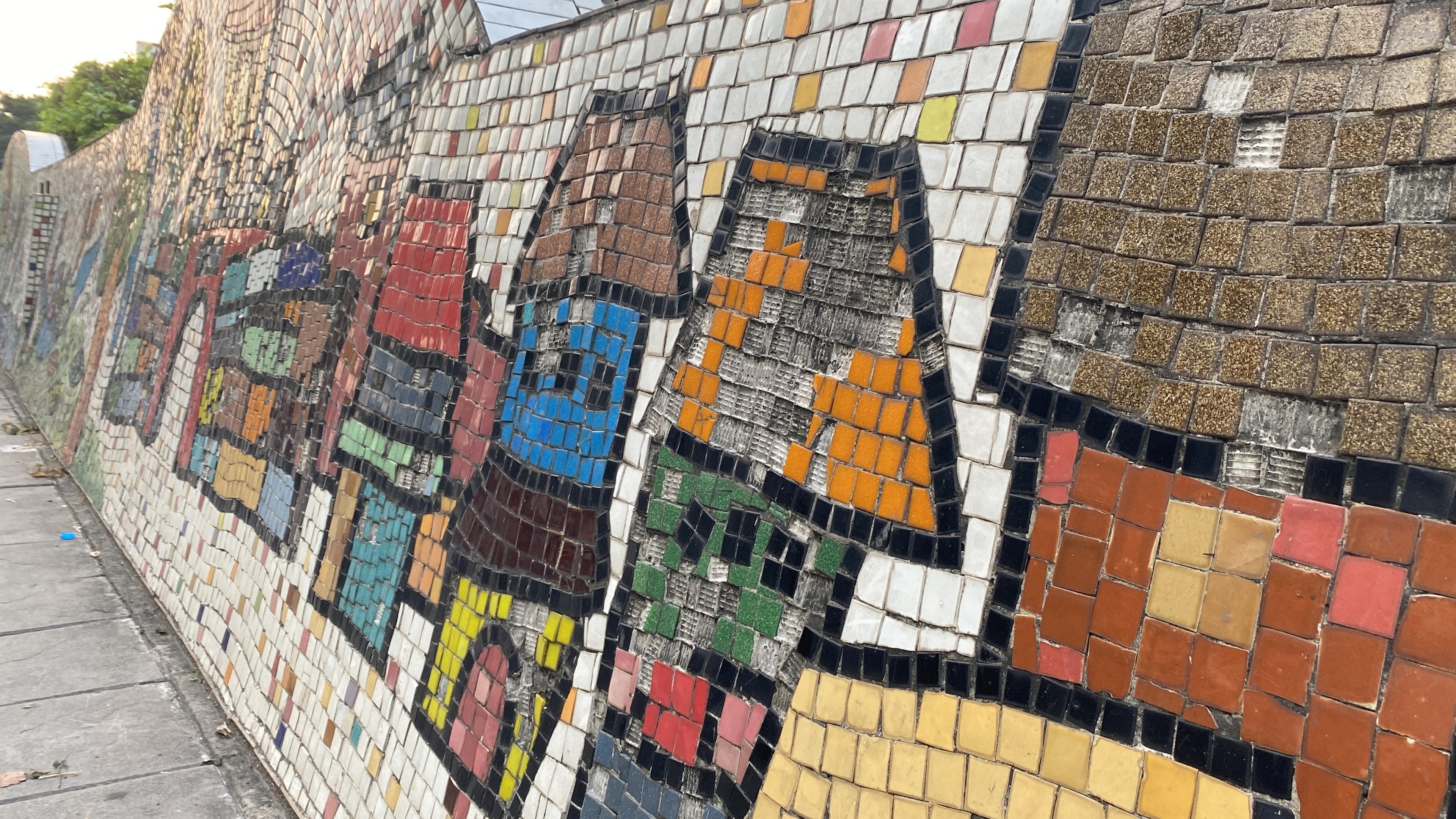 Con đường gốm sứ gắn bó với Hà Nội 13 năm, tuy nhiên đến nay mặt tường đã bong tróc, xuống cấp do lâu ngày không được trùng tu, cải tạo. |