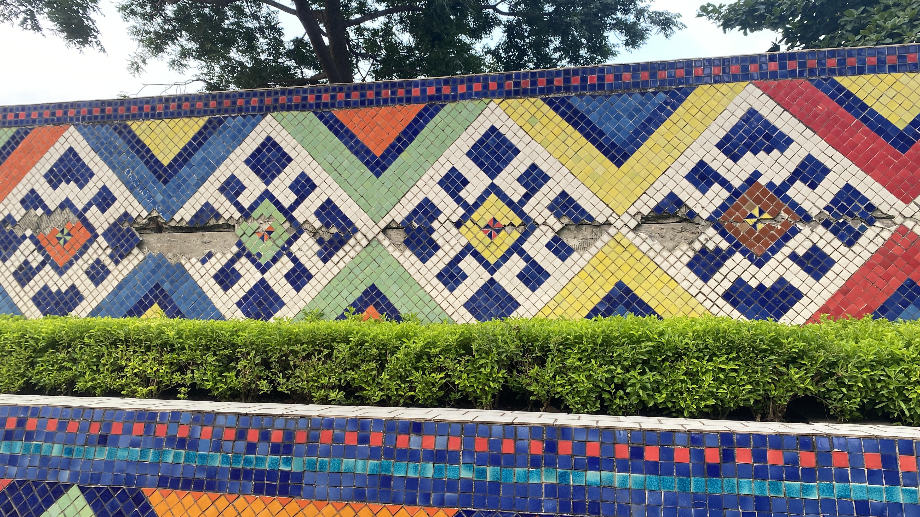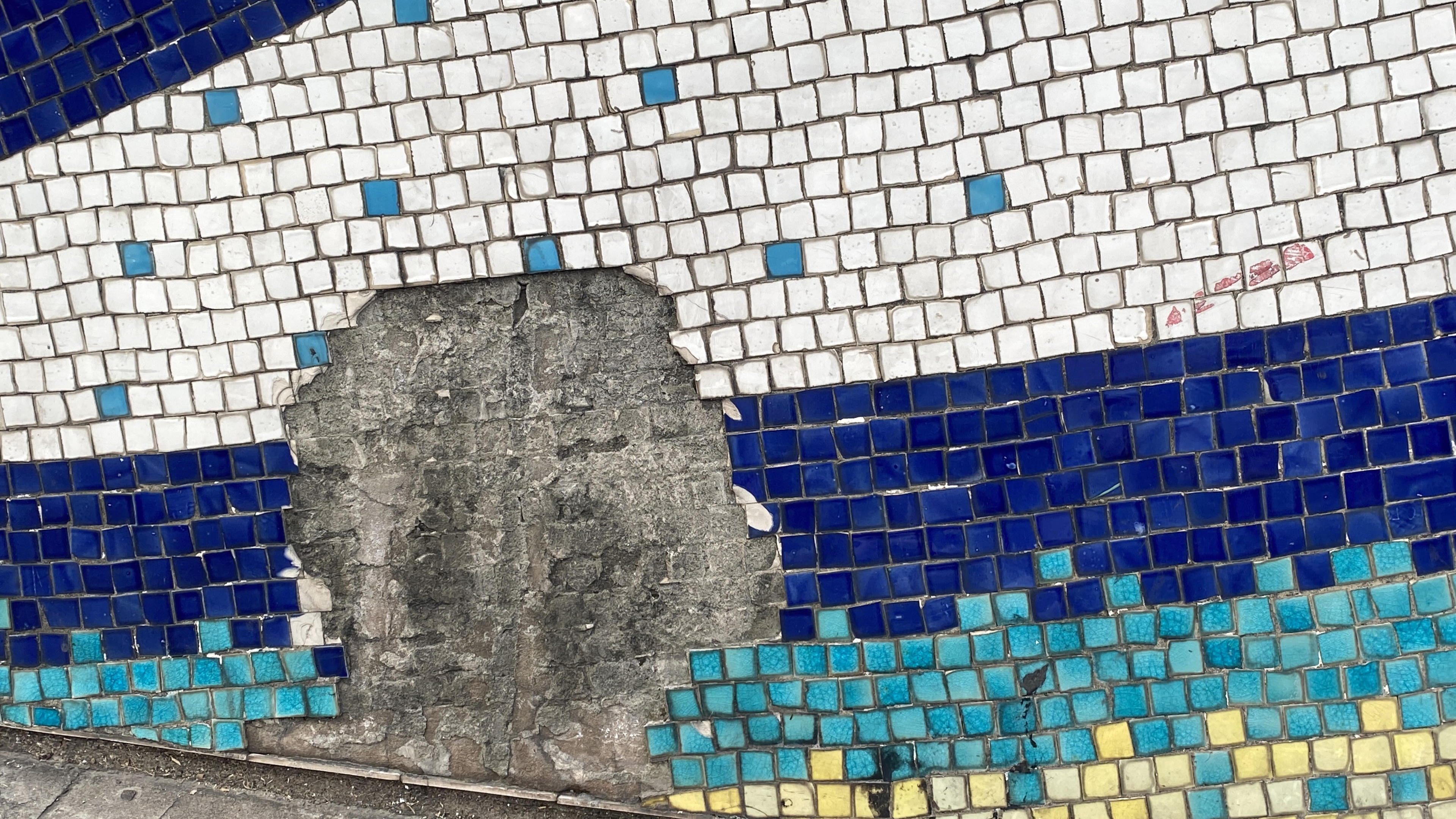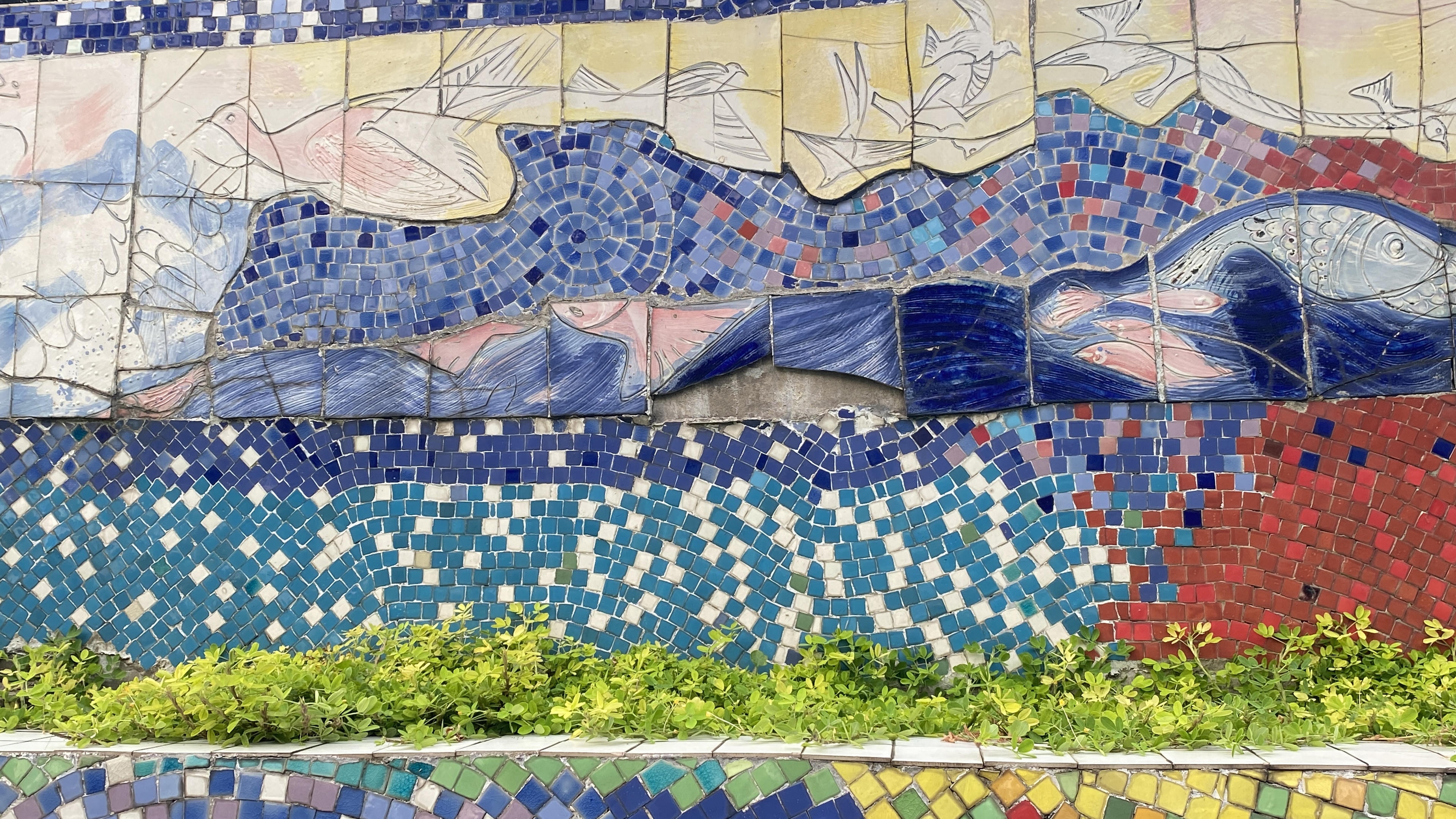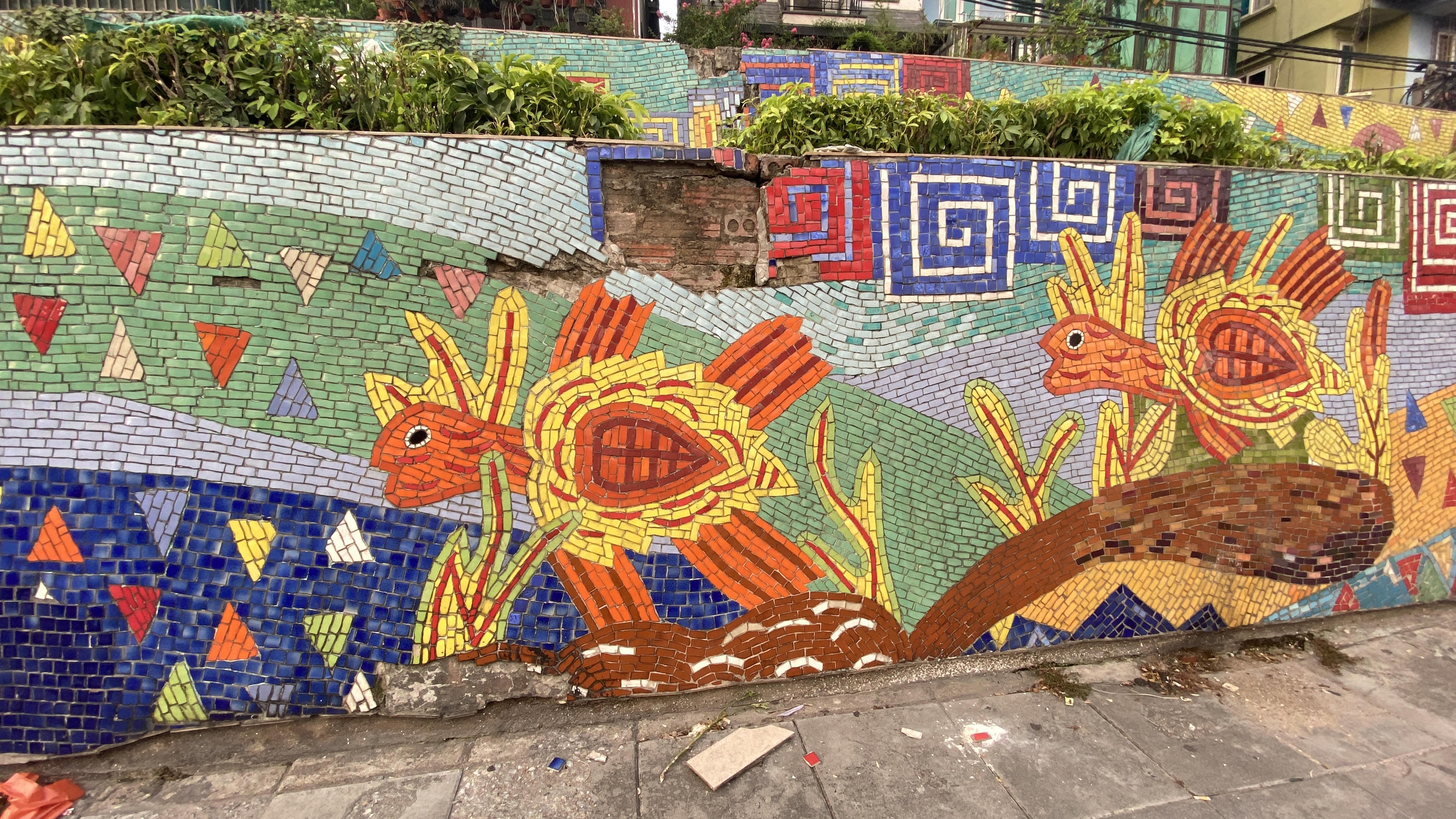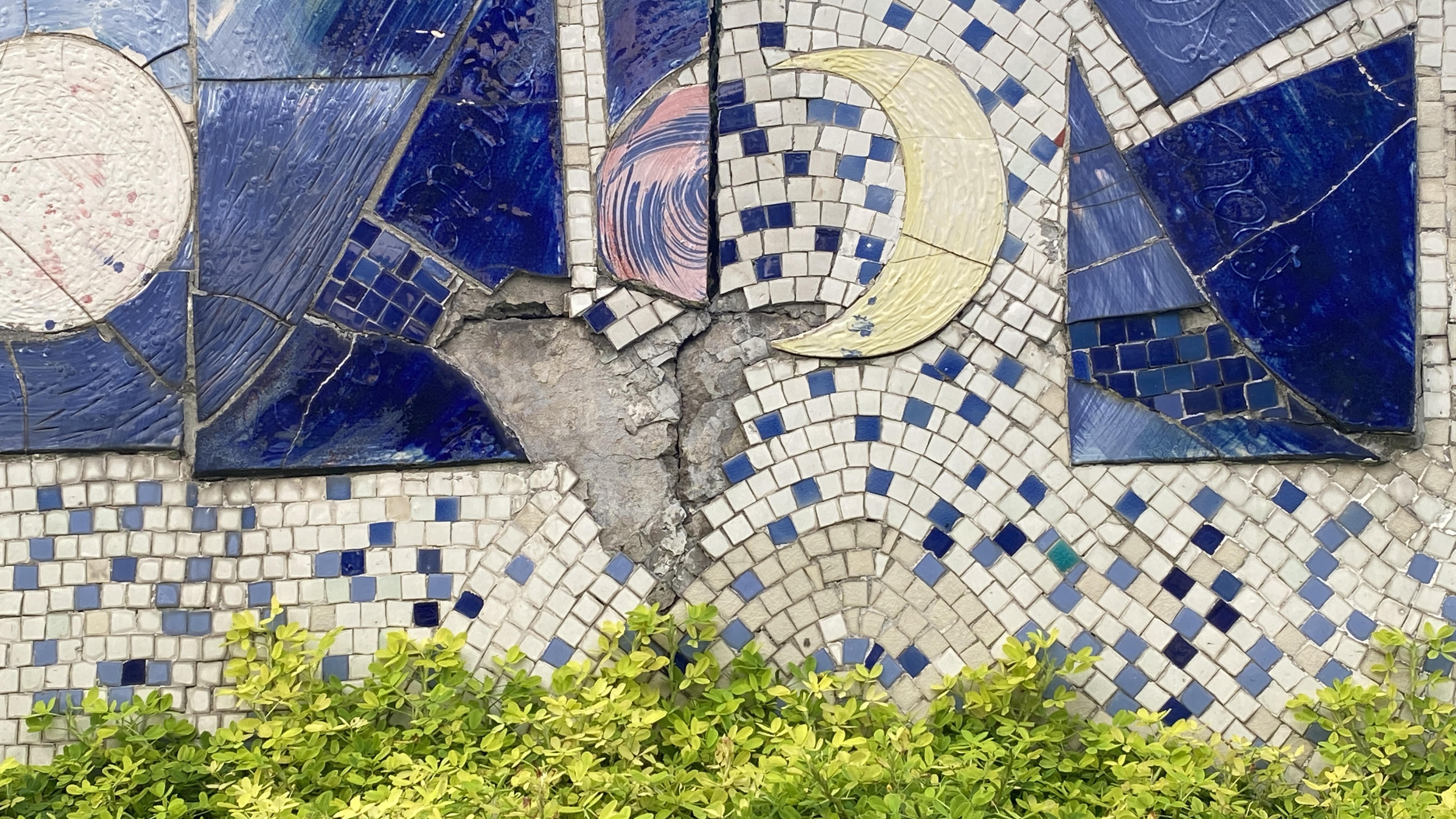 Con đường gốm sứ gắn bó với Hà Nội 13 năm, tuy nhiên đến nay mặt tường đã bong tróc, xuống cấp do lâu ngày không được trùng tu, cải tạo. |
