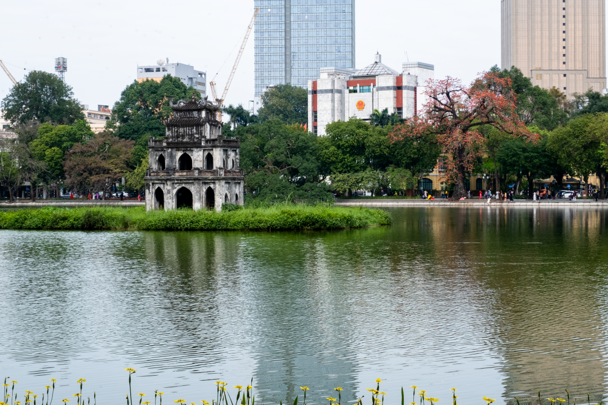 Góc chụp từ đường Đinh Tiên Hoàng nhìn ra Tháp Rùa