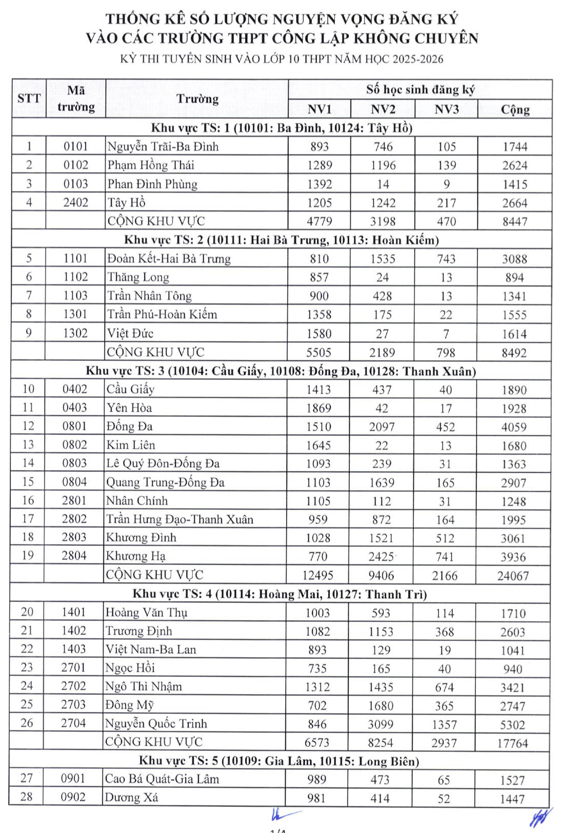 Chi tiết số lượng thí sinh đăng ký Kỳ thi tuyển sinh vào lớp 10 THPT không chuyên của từng trường năm học 2025-2026: