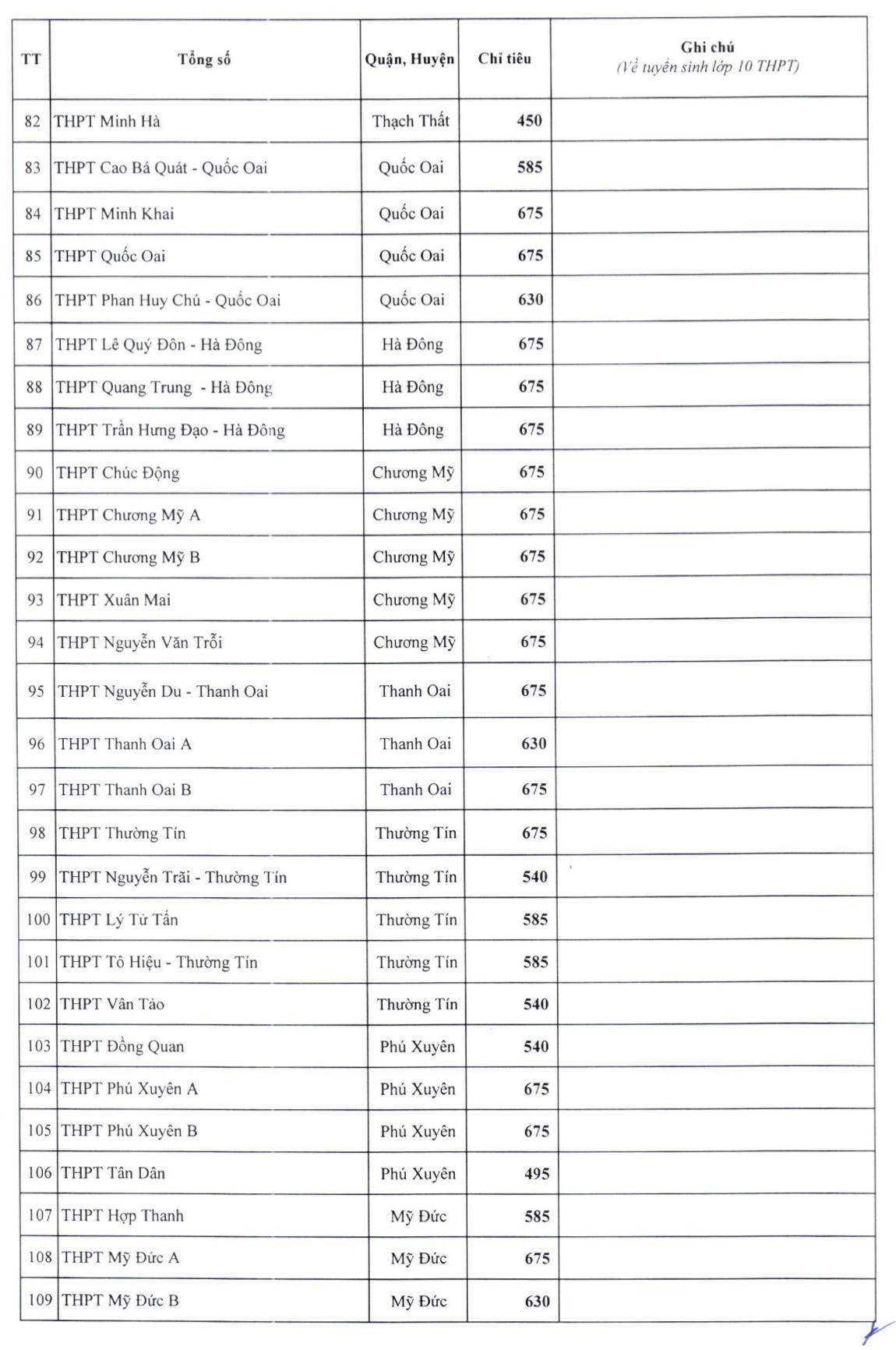 Hà Nội công bố chỉ tiêu tuyển sinh lớp 10 của các trường