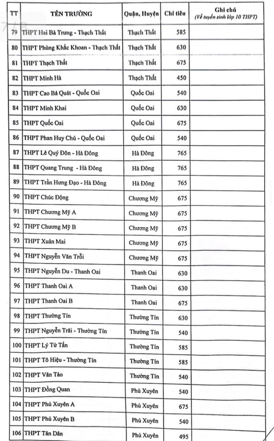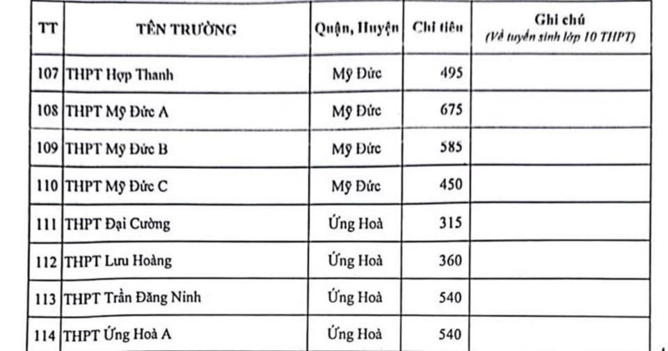 Chỉ tiêu tuyển sinh lớp 10 công lập không chuyên tại Hà Nội cụ thể như sau: