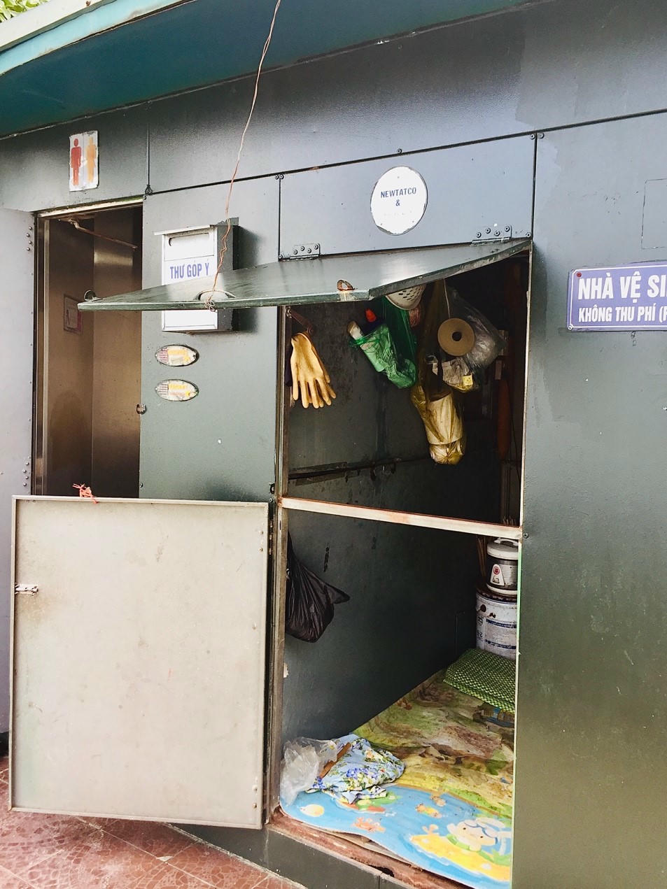 Anh Hoàng Nhật Minh – chủ một quán cafe ở ven Hồ Tây cho biết: “NVSCC ở đây bị bỏ hoang lâu rồi, nên cô lao công thấy vậy đã dọn dẹp để làm chỗ ở riêng. Mọi người ở đây đều thấy không nên những cũng không ai lên tiếng.”
