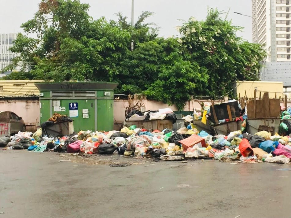 | Lối vào đầy rác thải và bốc mùi hôi thối tại đường Lê Đức Thọ (Cạnh sân vận động Mỹ Đình). |