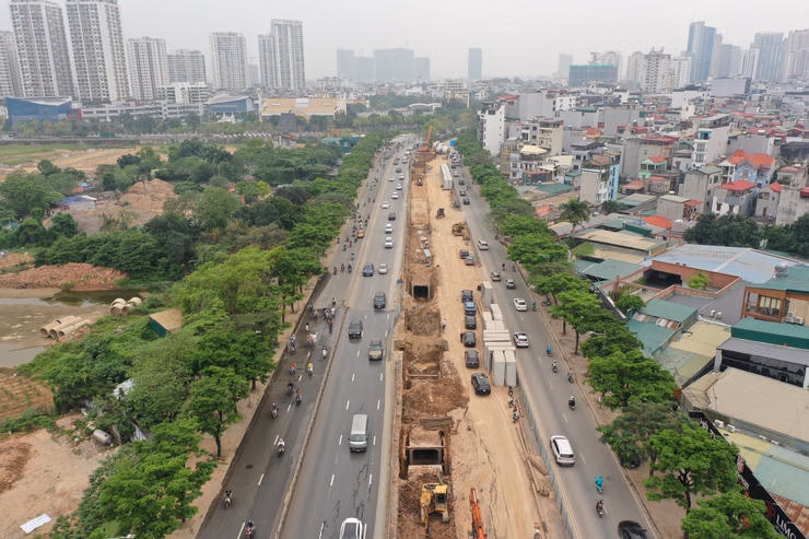 Dự án huy động hơn 400 công nhân cùng hàng trăm thiết bị máy móc để thi công liên tục. Tuy nhiên, tiến độ gặp vướng mắc do chồng lấn hạ tầng kỹ thuật, giao cắt với các dự án khác và quá tải bãi đổ thải, đặc biệt tại khu đô thị Resco. Biến động giá vật liệu, nhiên liệu cũng là yếu tố ảnh hưởng.