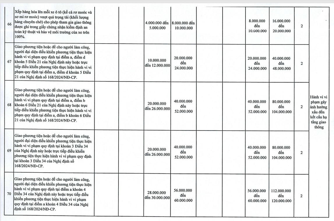 - Giao phương tiện hoặc để cho người làm công, người đại diện điều khiển phương tiện vi phạm quy định tại khoản 7, Điều 21, Nghị định 168.