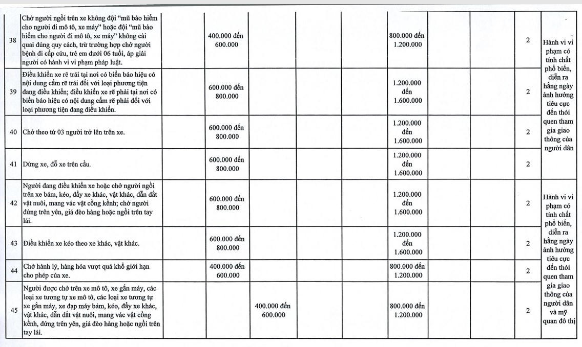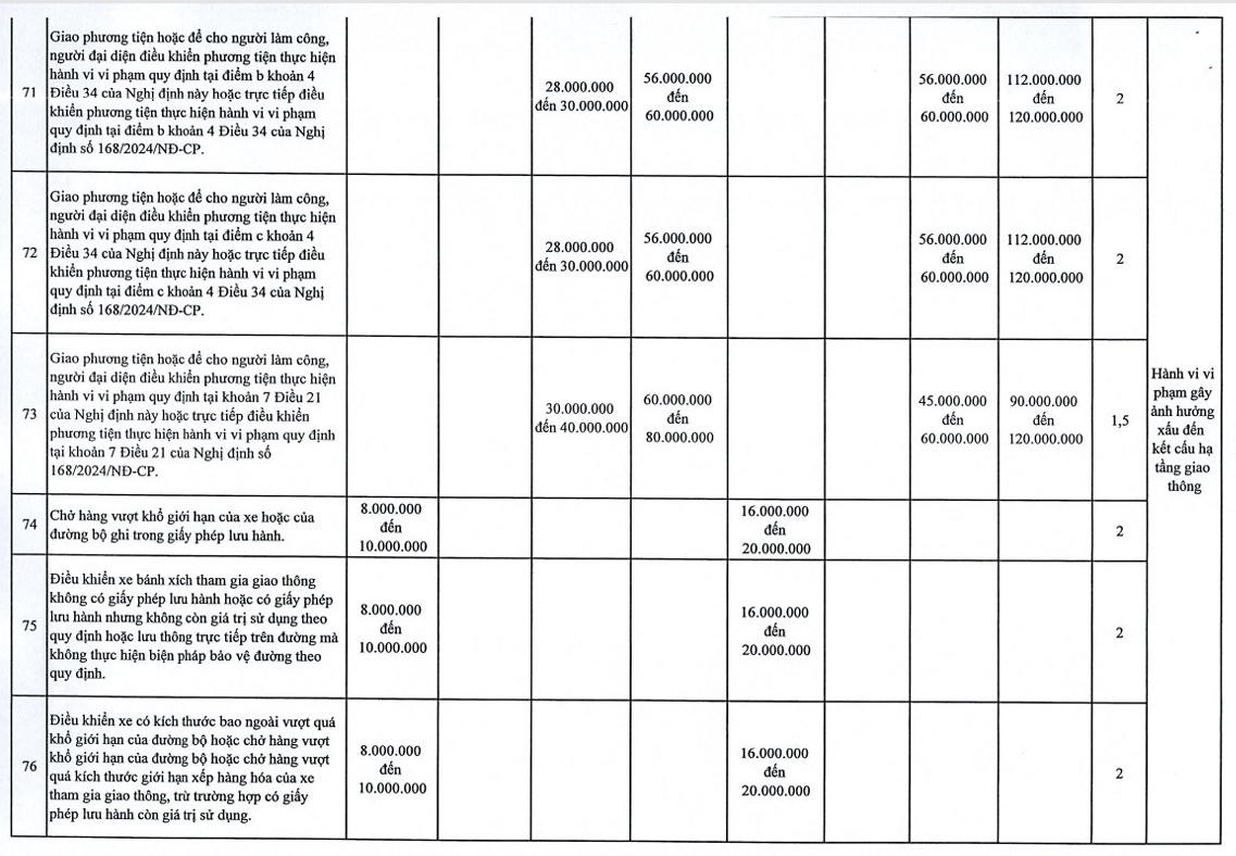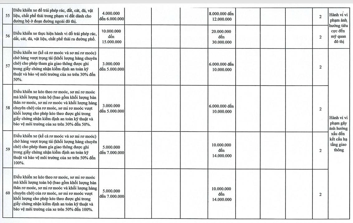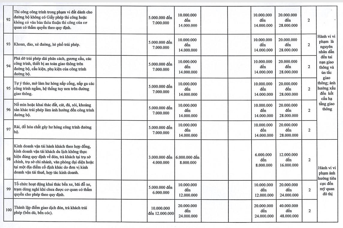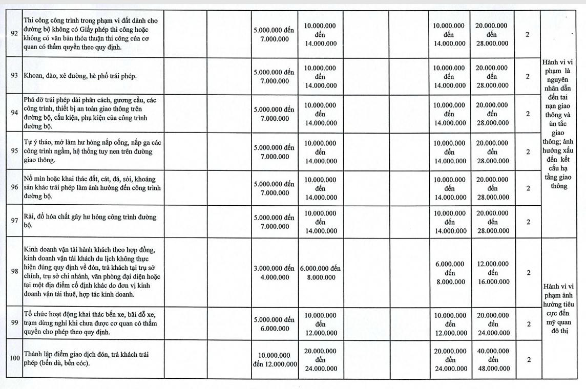 Trong đó, 4 hành vi có mức xử lý cao nhất từ 112 - 120 triệu đồng gồm: