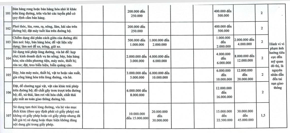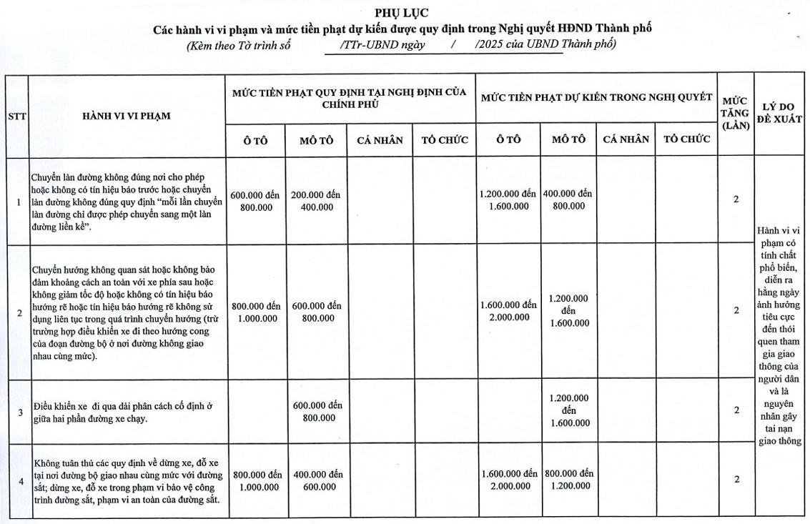 Theo đó, thành phố dự kiến nâng mức phạt gấp 1,5 - 2 lần so với Nghị định 168, với 107 hành vi vi phạm trong lĩnh vực giao thông đường bộ, dự kiến áp dụng từ tháng 7/2025.