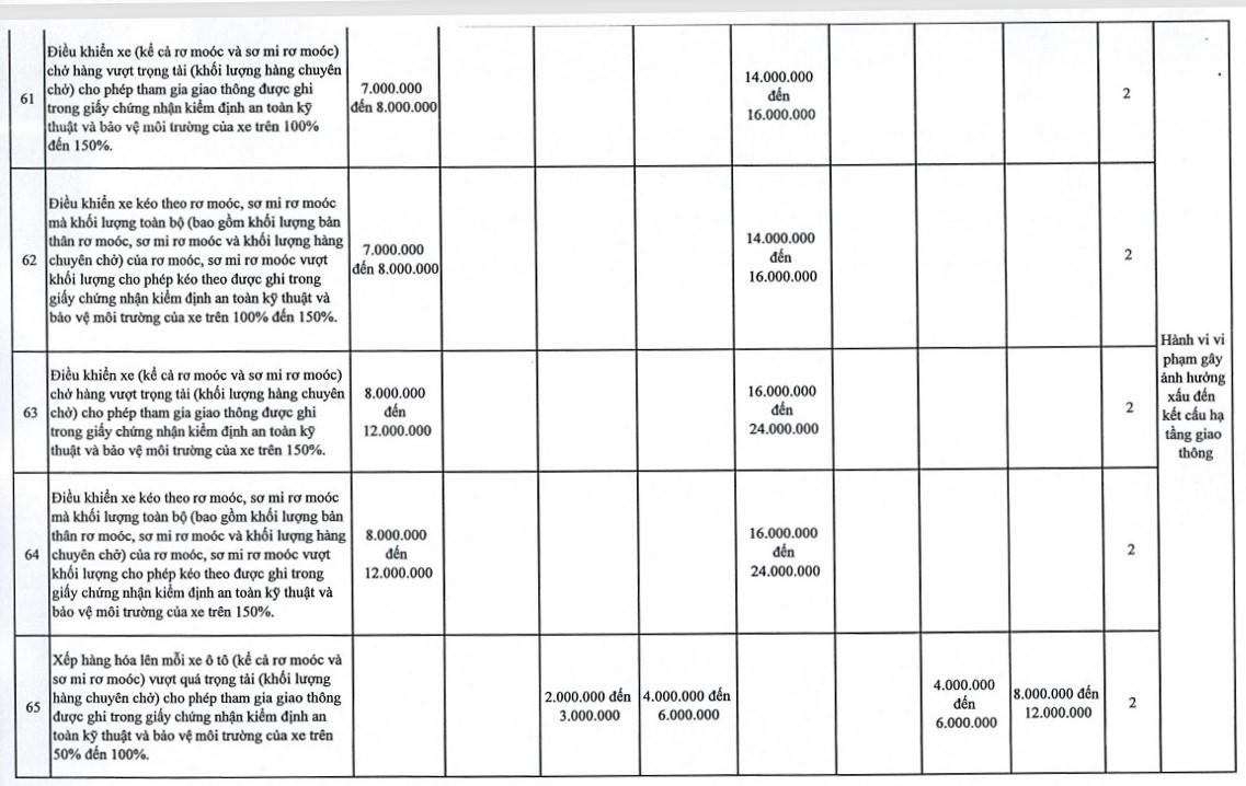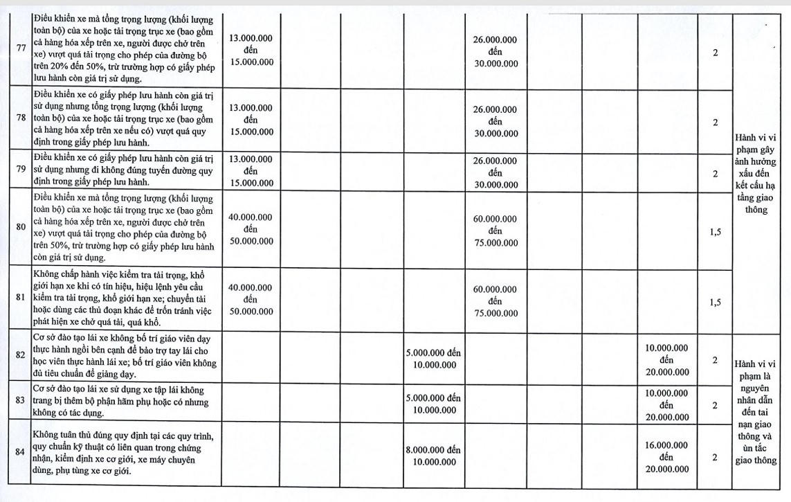 - Giao phương tiện hoặc để cho người làm công, người đại diện điều khiển hoặc chủ xe trực tiếp điều khiển xe mà tổng trọng lượng (khối lượng toàn bộ) của xe hoặc tải trọng trục xe (bao gồm cả hàng hóa xếp trên xe, người được chở trên xe) vượt quá tải trọng cho phép của đường bộ trên 20% đến 50%.