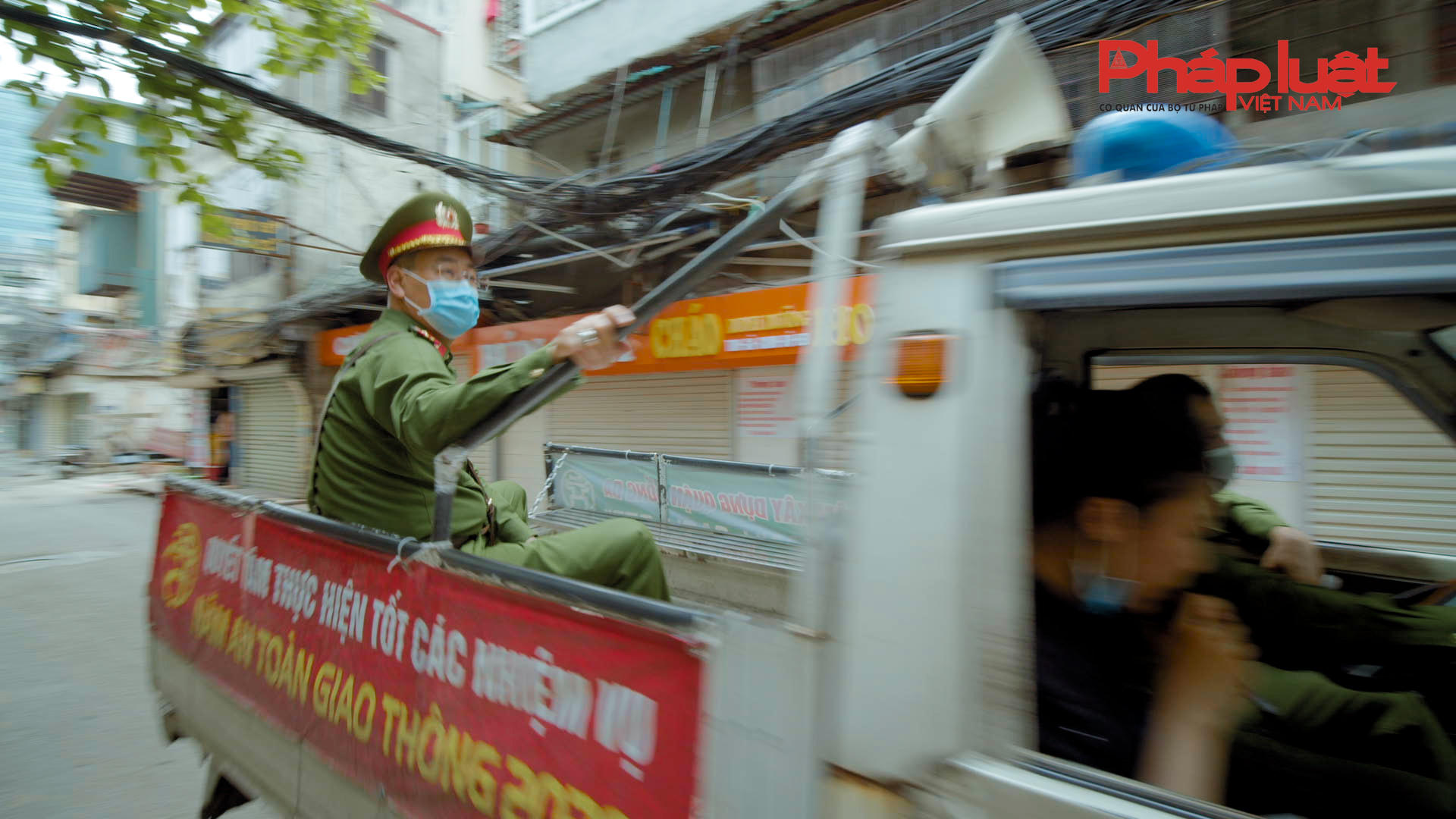 Công an phường Phương Mai trực tiếp nhắc nhở người dân cần hạn chế tụ tập đông người để giảm nguy cơ lây nhiễm trên địa bàn. (ảnh cắt từ clip phóng sự)