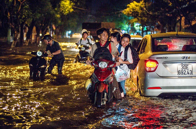(PLO) - Tối 7/7, cơn mưa lớn kéo dài 3-4 giờ khiến nhiều khu vực trên địa bàn Hà Nội rơi vào cảnh ngập nặng, ảnh hưởng xấu đến cuộc sống người dân và các phương tiện tham gia giao thông.