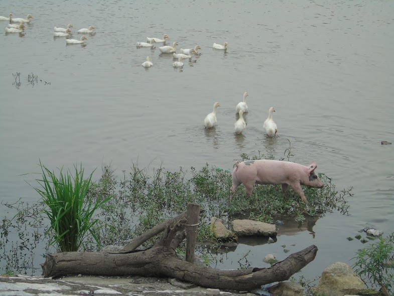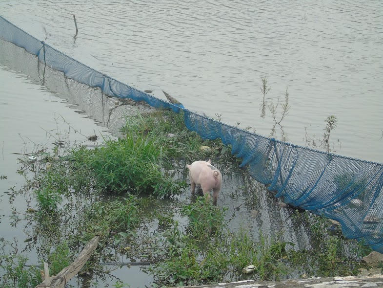 Cũng vì bị rơi vào tình trạng xây dựng “cầm chừng” nên không khó bắt gặp hình ảnh nguyên vật liệu xây dựng, bê tông, cốt thép bị bỏ ngổn ngang, chỏng trơ, phơi mưa nắng khiến nhiều người đi qua không khỏi cảm thấy lãng phí. Thậm chí, có hộ dân còn “mạnh dạn” đem lợn, vịt ra ven hồ thả rông khiến không khí đã hôi thối vì rác nay còn bị xú uế bởi mùi của phân lợn, phân vịt.