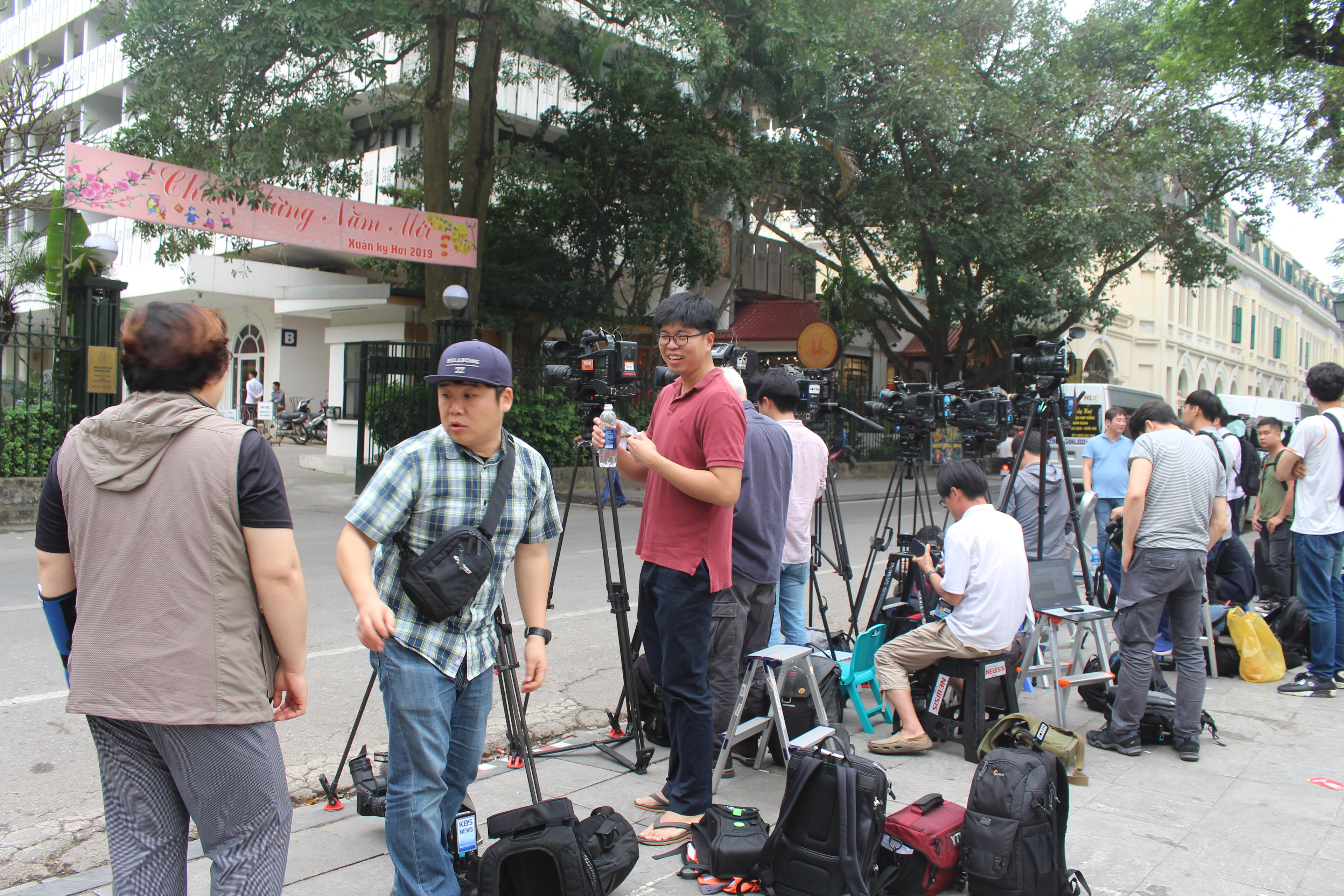 Một tuần trước khi Hội nghị thượng đỉnh chính thức diễn ra, đã có rất nhiều phóng viên, nhà báo quốc tế đến Việt Nam tác nghiệp sớm, các phóng viên nước ngoài tác nghiệp trước Nhà khách Chính phủ sáng 21/2