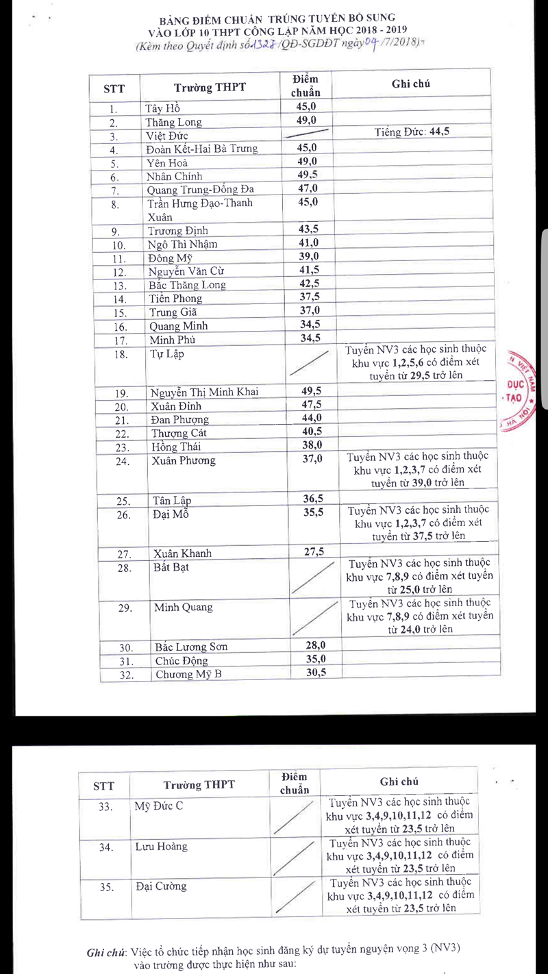 (PLO) - Sở Giáo dục và Đào tạo Hà Nội vừa công bộ hạ điểm vào lớp 10 năm học 2018-2019.của một số trường công lập.