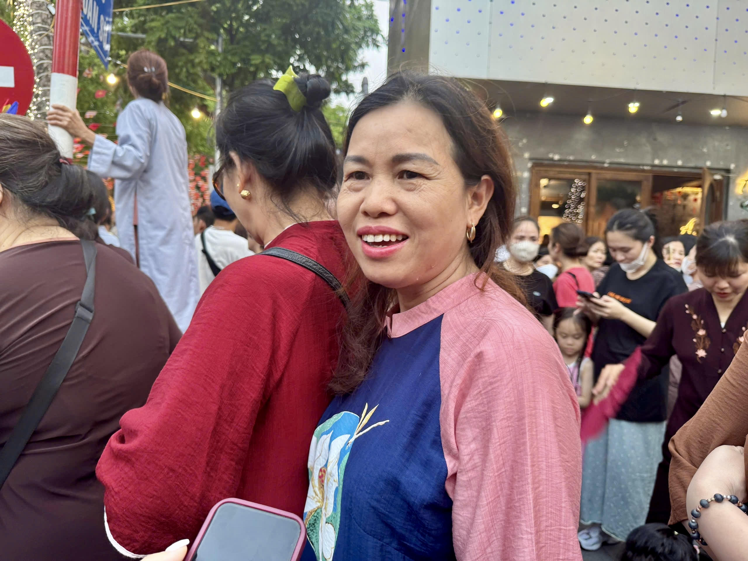 Chị Dương không khỏi xúc động khi được tận mắt chứng kiến lễ cung rước xá lợi Đức Phật. |