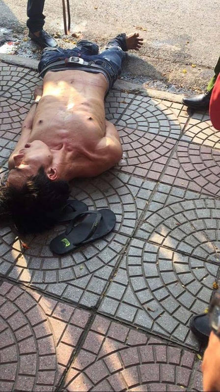Theo một số nhân chứng có mặt tại hiện trường, vào thời điểm trên đối tượng Tỏ đang đi trên đường bỗng cởi áo và chạy hú hét dọc các khu dân cư. Gặp người đi đường thì thè lưỡi trêu và liên tục lảm nhảm cười nói.