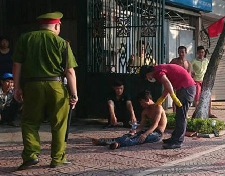 Sau khoảng 30 phút nằm trước cửa số nhà 14 đường Nguyễn Văn Cừ, đối tượng ngồi dậy khai tên Tỏ quê Thanh Hóa vừa mới “đập đá” xong nên bị mất kiểm soát về hành vi.