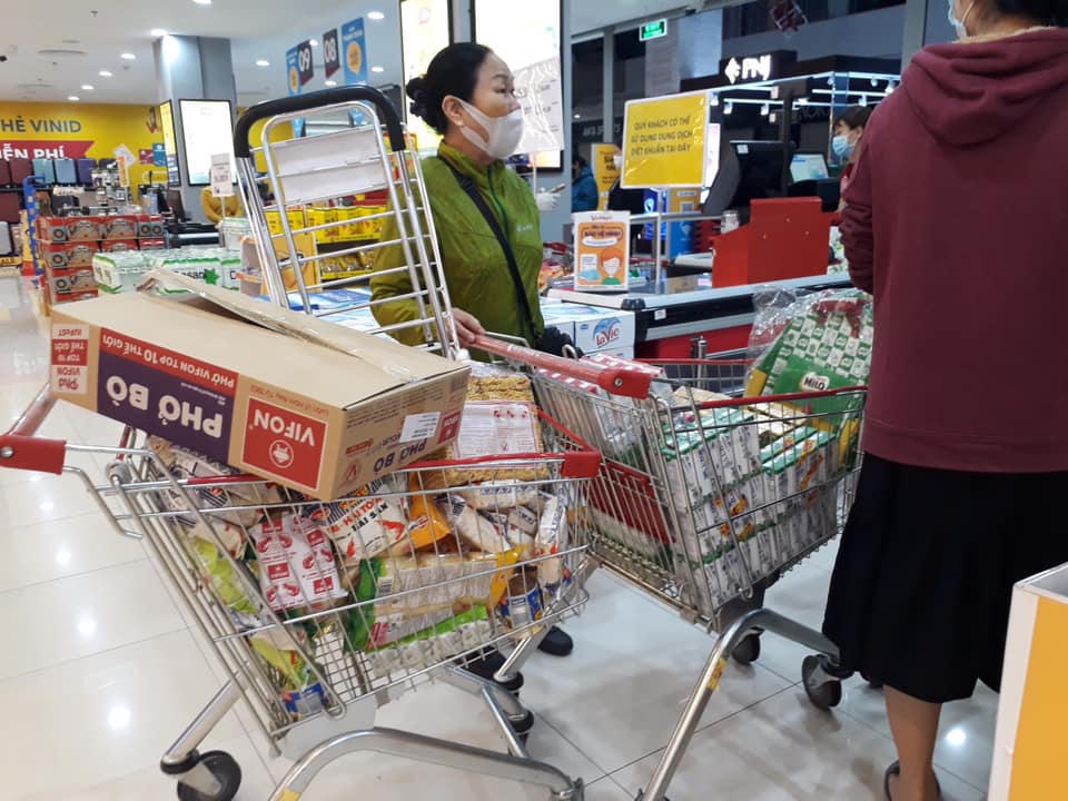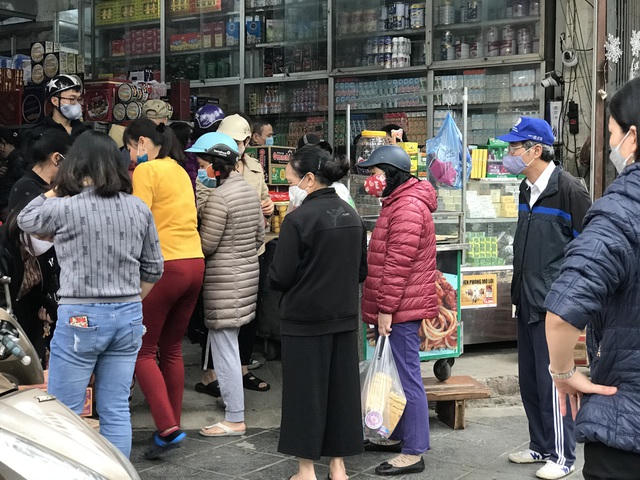Chị Hà Thủy phản ánh, khu nhà chị ở Vạn Bảo (Ba Đình, Hà Nội), các cửa hàng bán lẻ thực phẩm, sữa và các hiệu thuốc cũng đông khách.