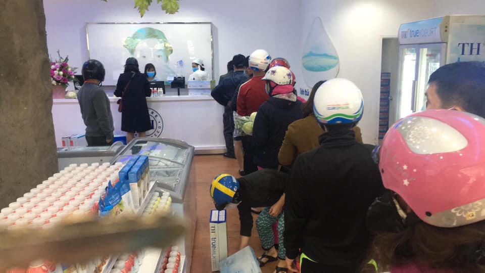 8h30 sáng 7/3 tại cửa hàng TH Truemart trên đường Hoàng Quốc Việt, đông khách xếp hàng chờ thanh toán: