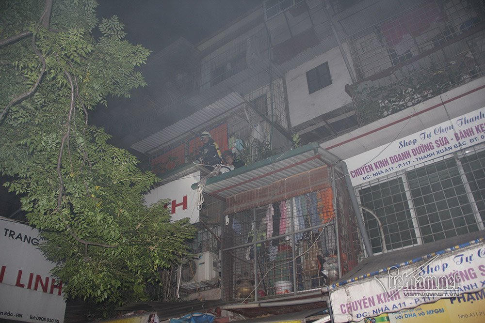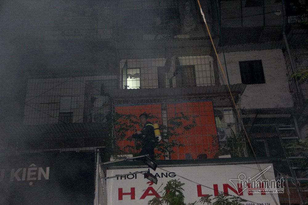 Thiếu tá Nguyễn Quang Huấn, Phó trưởng phòng CS PCCC và CHCN số 8 cho biết thêm: Khu vực bị cháy ở tầng 1, vị trí cháy ở trong kho có diện tích khoảng 30 m2 của cửa hàng giày dép, phía ngoài là gian ban hàng. Khi lực lượng chữa cháy đến đã ưu tiên cho công tác cứu nạn giải cứu người bị nạn của căn hộ từ tầng 2 đến tầng 5.