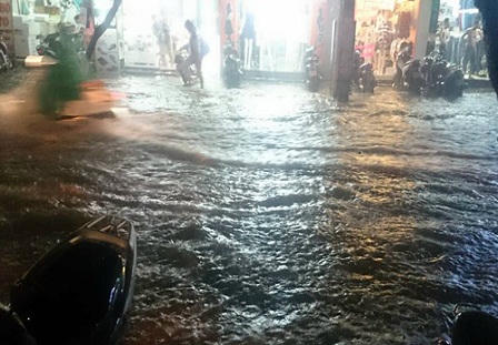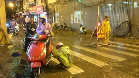 Tại đường Phạm Hùng, Phạm Văn Đồng, Nguyễn Xiển, Quan Nhân... mực nước dâng cao khoảng 40cm, có nơi tới đầu gối người lớn. Trên khu vực phố Thành Công, nước tràn vào nhiều nhà dân, quán ăn ở hai bên đường.