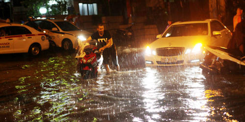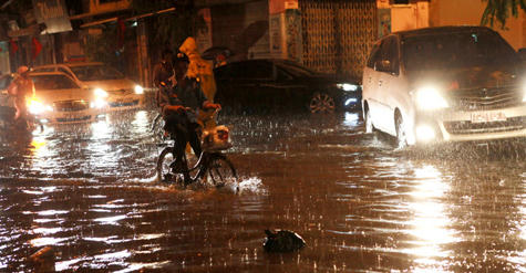 (PLO) - Tại các tuyến đường Phạm Hùng, Phạm Văn Đồng, Nguyễn Xiển, Quan Nhân... mực nước dâng cao 40cm, có nơi tới đầu gối người lớn. Nhiều phương tiện giao thông chết máy giữa đường sau cơn mưa muộn tối 26/8.