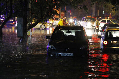 Theo Công ty thoát nước Hà Nội, mưa to tập trung từ 19h15' đến 19h45', tại khu vực Cầu Giấy lượng mưa gần 90 mm; Hầm chui Trung tâm Hội nghị Quốc gia hơn 105mm; Hồ Tây 75mm....
