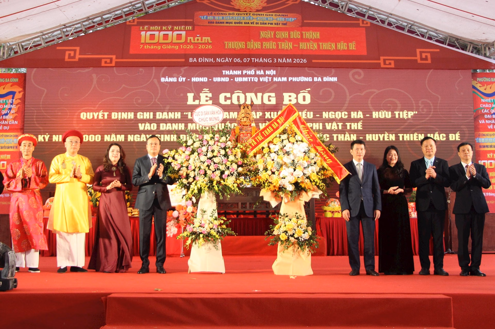 Ngày 7/3, tại đền Núi Sưa, phường Ba Đình (Hà Nội), chính quyền và nhân dân địa phương tổ chức Lễ công bố quyết định ghi danh Lễ hội Tam giáp Xuân Biểu - Ngọc Hà - Hữu Tiệp vào Danh mục Di sản văn hóa phi vật thể quốc gia, đồng thời kỷ niệm 1.000 năm Ngày sinh Thượng đẳng Phúc thần Huyền Thiên Hắc Đế.